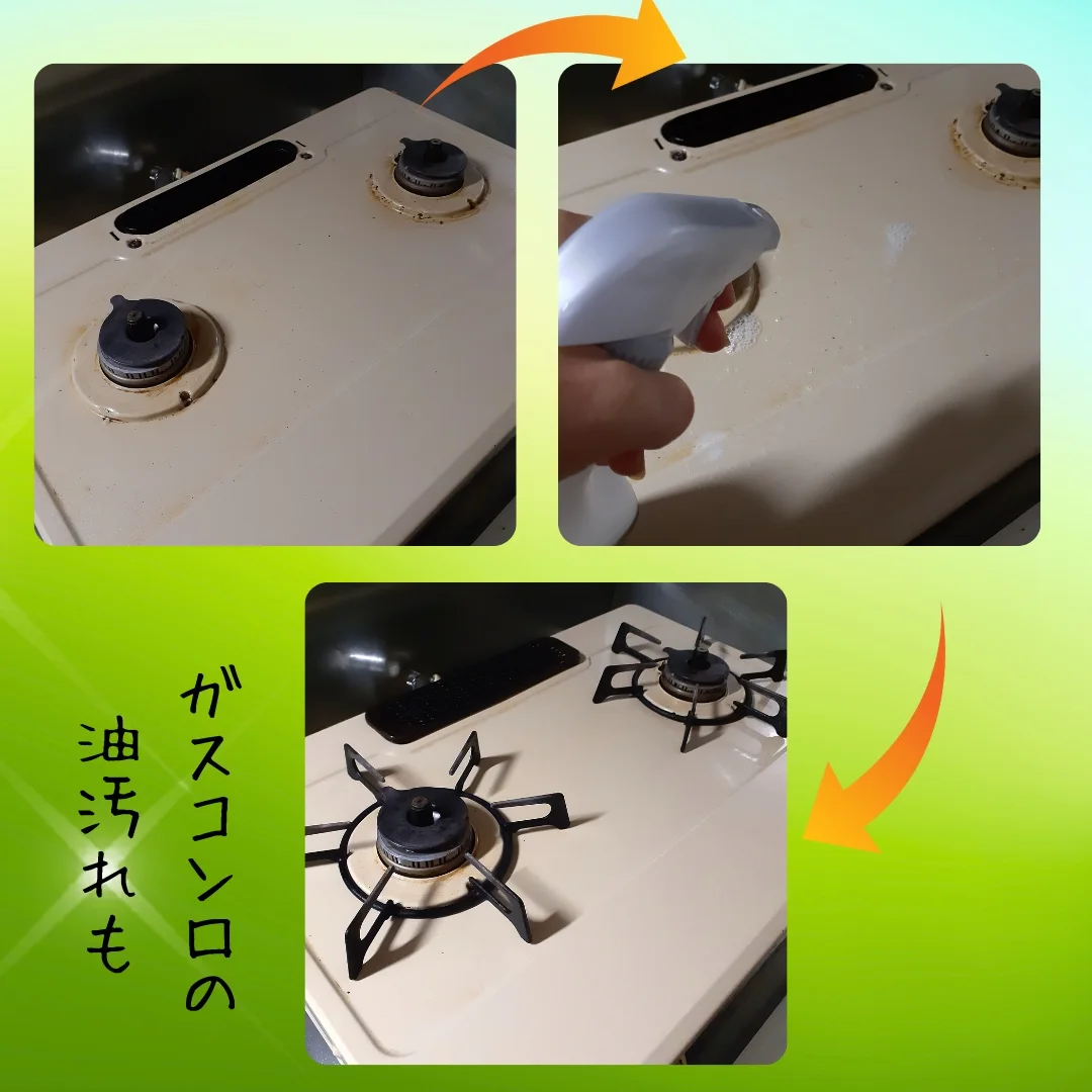 しつこい汚れのついたガスコンロもすっきり落ちました。