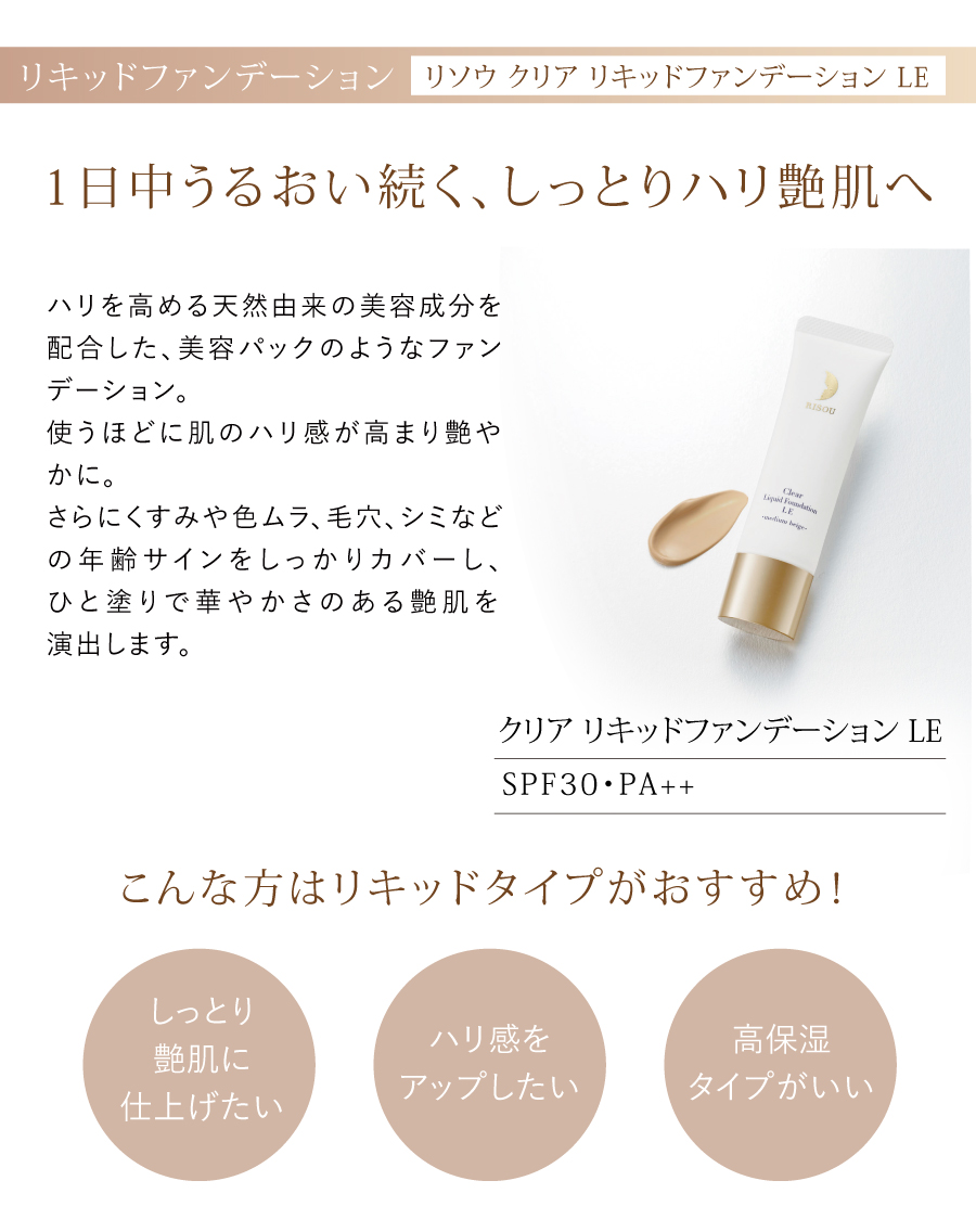 ハリを与える天然由来の美容液成分を配合したファンデーション。
