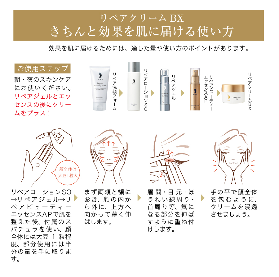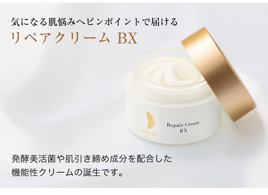 アイクリーム・デイクリーム・ナイトパック・ネッククリームの4役を備えた、発酵美活菌や肌引き締め成分を配合した機能性クリーム。
