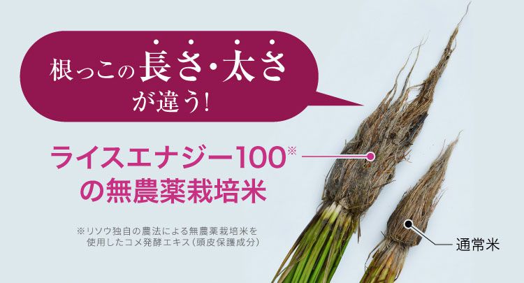 ※1:リソウ独自の農法による無農薬栽培米由来のコメ発酵エキス(頭皮保護成分)