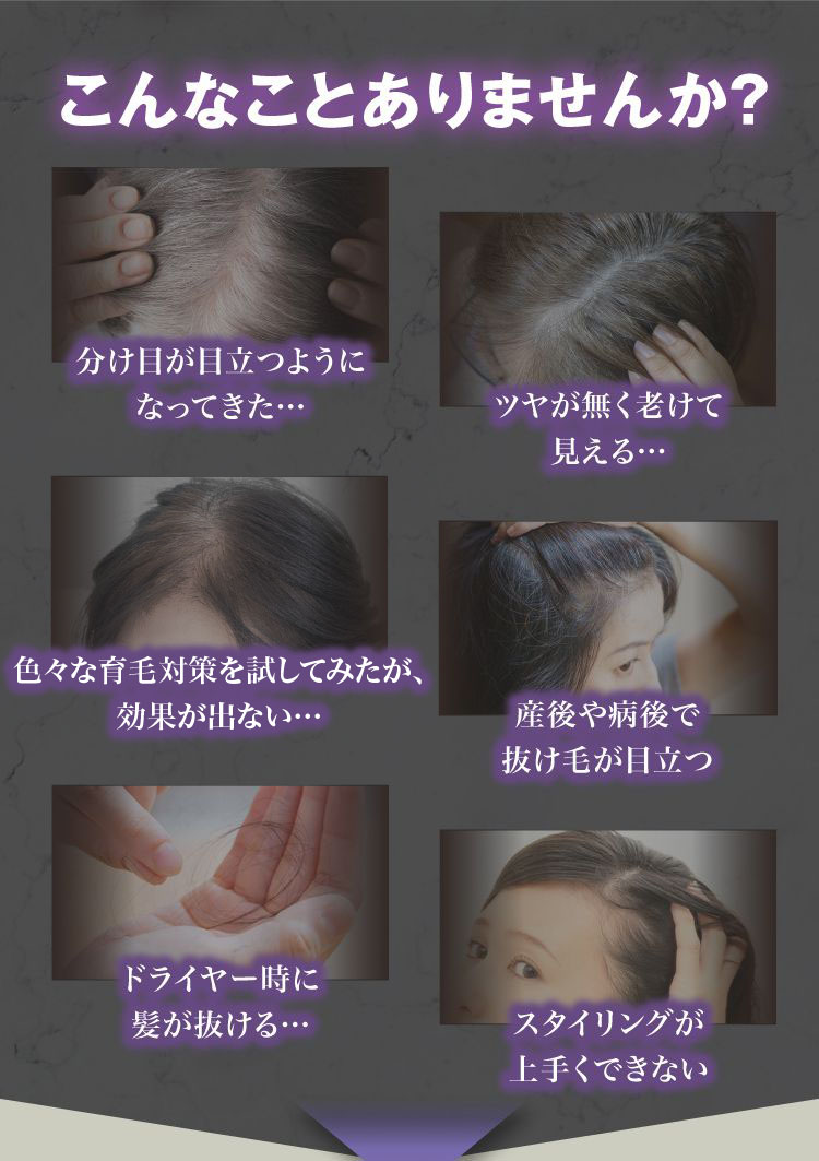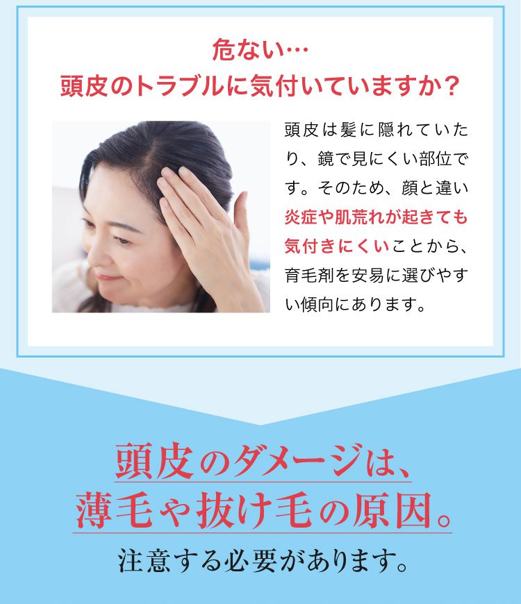 気になる薄毛や抜け毛の対策、ハリ・コシがなく弱ってきた髪、ふけ・かゆみ、荒れた頭皮への悩みにも。