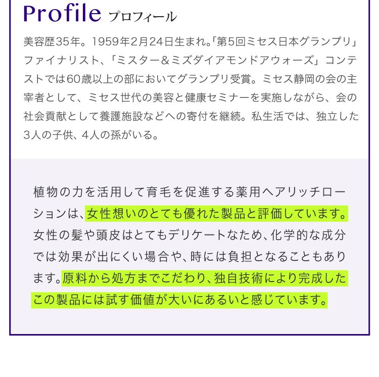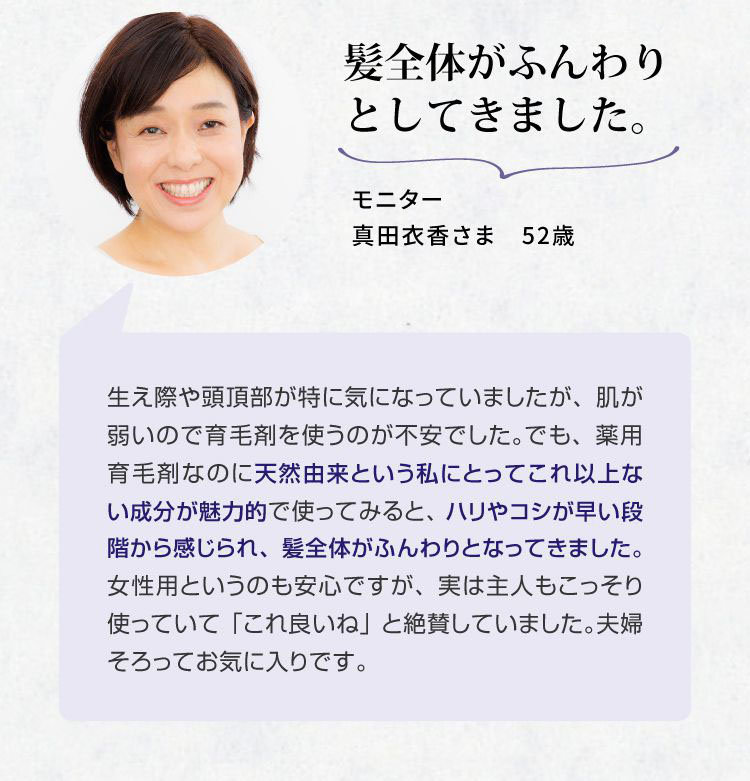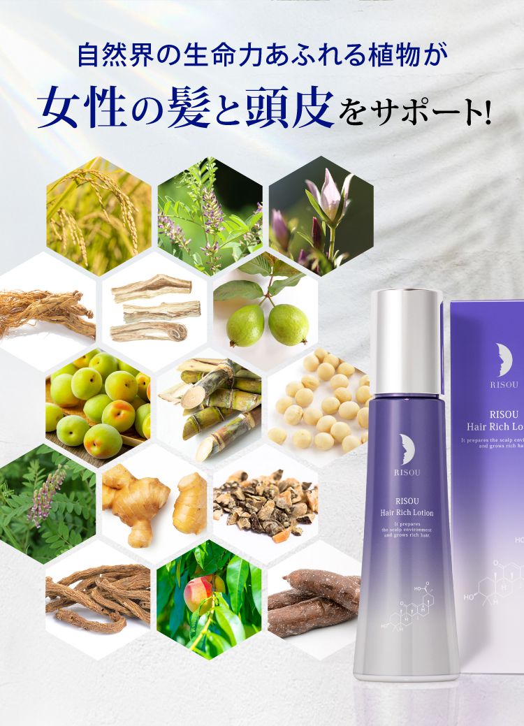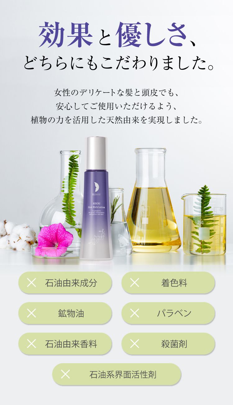 無農薬栽培米など、植物の生命力を活用した女性のための薬用育毛剤。