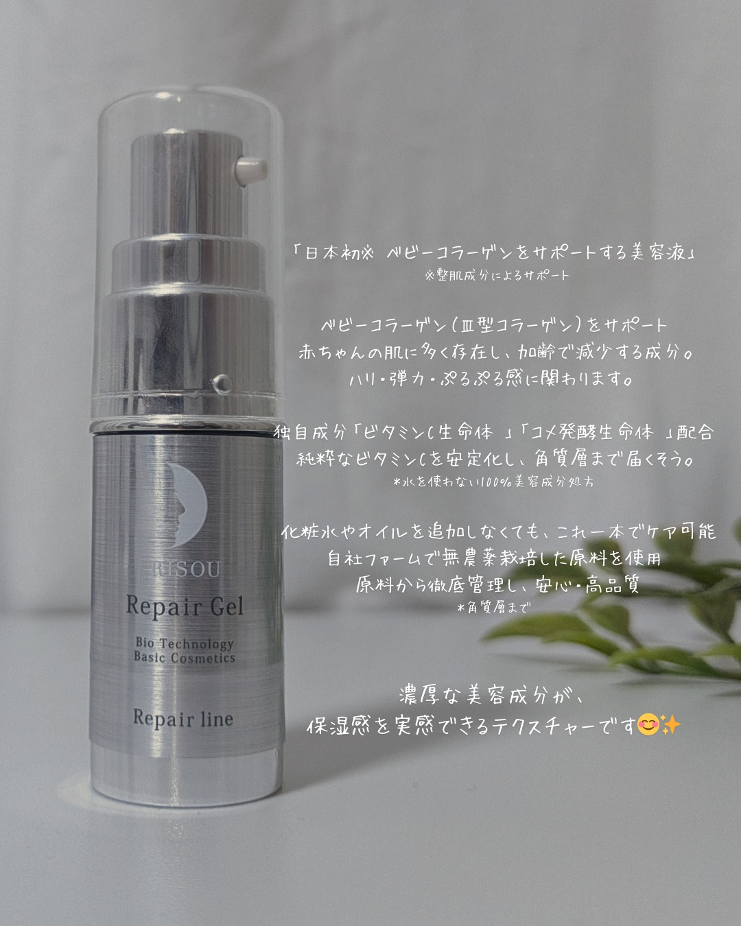 ベビーコラーゲンをサポートする日本初の美容液※1 日本初※1の成分「ビタミンC生命体(R)」と「コメ発酵生命体(R)」※2をW配合。 無農薬栽培米を使用した100%植物由来の処方と、1滴の水も使用しない100%美容成分を実現しました。 厚生労働省基準の臨床試験ではキメ・ツヤ・くすみ※3・弾力・保湿、その全ての作用が検証され、医学誌「医学と薬学」に論文が掲載。 加齢で減少するベビーコラーゲンのサポートをおこない、赤ちゃんのような※4プルプル肌がめざせるオールインワン美容液です。 ※1:世界の化粧品成分を収載するINCIシステムに初めて収載された成分を使用 ※2:整肌成分 ※3:乾燥による ※4:ハリやうるおいのある肌 32mL(約60日分) 税抜15,000円(税込16,500円)