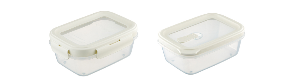 ロックタイプは4点ロックで密閉でき、汁モレしません。