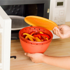 野菜を洗う、水を切る、電子レンジで加熱する、冷蔵庫で保存する。一連の作業をこれ一つで行える、ボール・コランダー・フタのセットです。 レビュー数 : 364 |