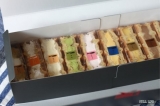 この柔らかさはクリームとの相性を好くするための工夫の一つ。出来上がったワッフルケーキは、できたてのふんわり感を損なわないよう冷蔵発送でお届けします。