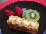 ワッフルケーキの店【RL(エールエル)】さまのご厚意で、7月の新作ワッフルをお味見する機会に恵まれました♪ こちらのワッフルは、家族一同、大、大、大好きなので大変嬉しいです 7月の新作ワッフルは、爽やかな季節の果物を使用したワッフルですよ♪ 本日食べたのは、フルーツ杏仁、オレンジピール… 2010/06/12