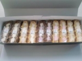ワッフルケーキの店【RL(エールエル)】さんのワッフルが届きました♪真っ黒の箱に赤いシールで箱からしてカッコイイですよっ箱を開けるとじゃーーん♪5種類が2個づつ(´ω`)5種類の1個づつをズームインでパチリ早速相棒っちとおあじみ会開催wwお互い全種類食べたいけど丸一個づつ5種類は食べ… 2011/05/21