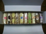 素敵なものを頂きました♪1日4万個が完売する【RL(エールエル)】看板商品「手作りワッフルケーキ」♪あずきチョコプレーン抹茶ストロベリープリンごろごろりんごバニラカスタード等、10種類のワッフルが入っていて、二口サイズだから1回で何個も食べれちゃいますクリスマスバージョンのワッフル… 2010/12/14