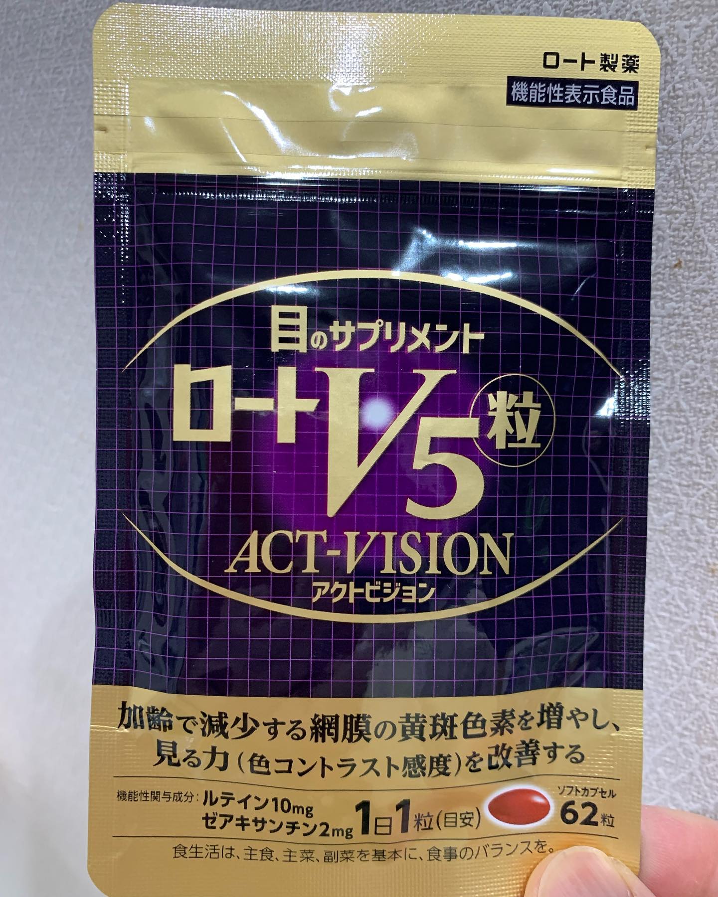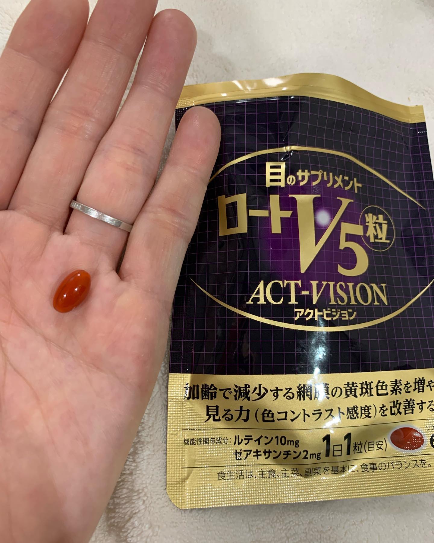 「ロートV5粒アクトビジョン」 1日1粒でルテイン10mg、ゼアキサンチン2mgを機能性関与成分として配合した目のサプリメント。 加齢で減少する網膜の黄斑色素を増やし、見る力(色コントラスト感度)を 改善する 朱色のきれいな粒で、 1日1粒というのが続けやすく、 粒が小さく飲みやすいです。 最近は小さな文字が見えにくくなり、 特に夕方になると目が疲れやすいです。 近眼で視力が悪いので、 目は気になるので、 健康の為に飲み続けたいです。 #ロートV5粒 #V5粒 #目の事ならロート製薬 #ロート製薬 #rohto #monipla #rohto_fan#ルテイン#ゼアキサンチン