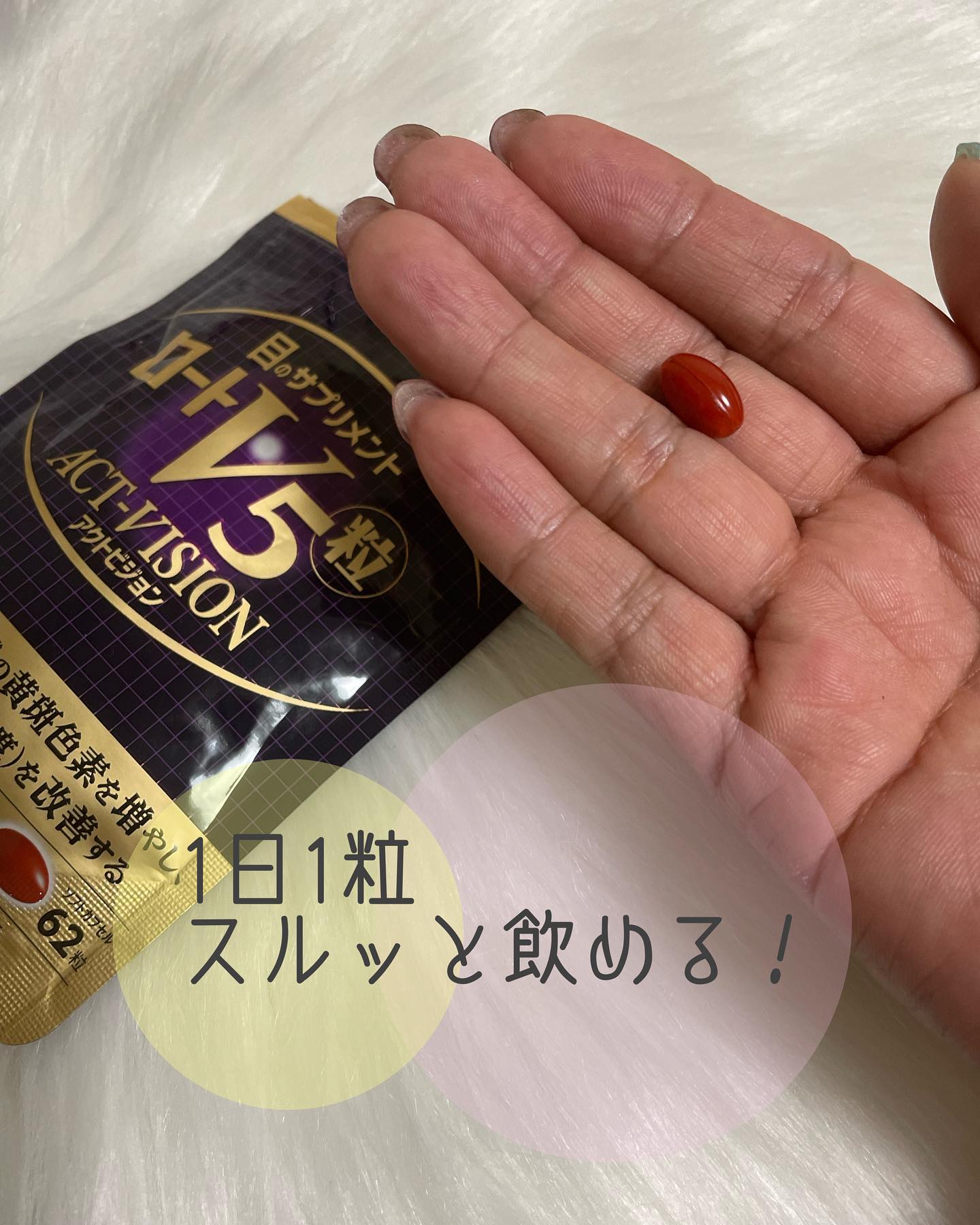 𓍯 ロートV5粒アクトビジョン 飲み出して2週間経過しました〜 1日1粒なので めんどくさがりの私でも続いてます♡ 小さなカプセルなので喉に引っかかるような 感覚もなくスッと飲めるよ♡ 見る力(色コントラスト感度) を改善するサプリメント 論文で効果が実証されている ルテイン5:ゼアキサンチン1の 割合にこだわって配合したサプリ 小さな文字が見えにくい 夕方になるとぼやけけてくる そんな私に嬉しいサプリです🙄 #ロートV5粒 #V5粒 #目の事ならロート製薬 #ロート製薬 #rohto #monipla #rohto_fan