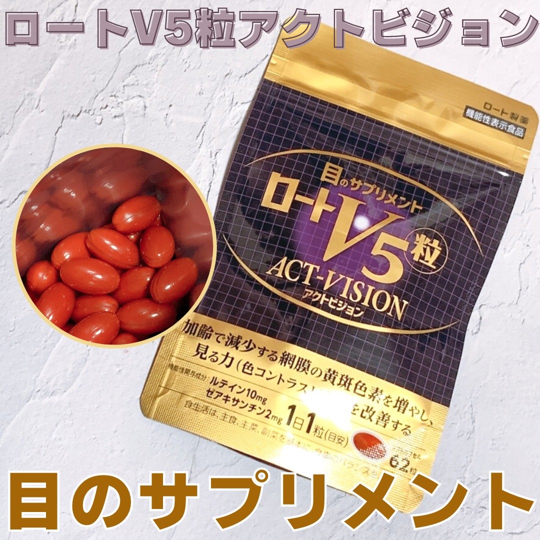 \目の健康に!/ ロートV5粒アクトビジョン ルテイン・ゼアキサンチンを機能性関与成分として配合し加齢で減少する網膜の黄斑色素を増やし見る力※1を改善✨ ※1 見る力とは、色コントラスト感度のこと 1日1粒(目安)という続けやすさがとても良かったです✨ 粒も小さめなので飲みやすさも◎ ✔ 目の健康が気になる方 ✔ 夕方になると目がぼやける方 ✔ 小さな文字が見えにくい方 そんなお悩みがある方には特におすすめです☺️ 飲み始めて2週間くらいですが、目のクリア感を感じるので続けて飲んでみようと思います✨ #ロートV5粒 #V5粒 #目の事ならロート製薬 #ロート製薬 #rohto #monipla #rohto_fan #美容 #美容垢さんと繋がりたい #美容垢さんフォロバします #アラフォーメイク #コスメ好きさんと繋がりたい #コスメオタク #コスメ購入品 #コスメレビュー #フォローミー