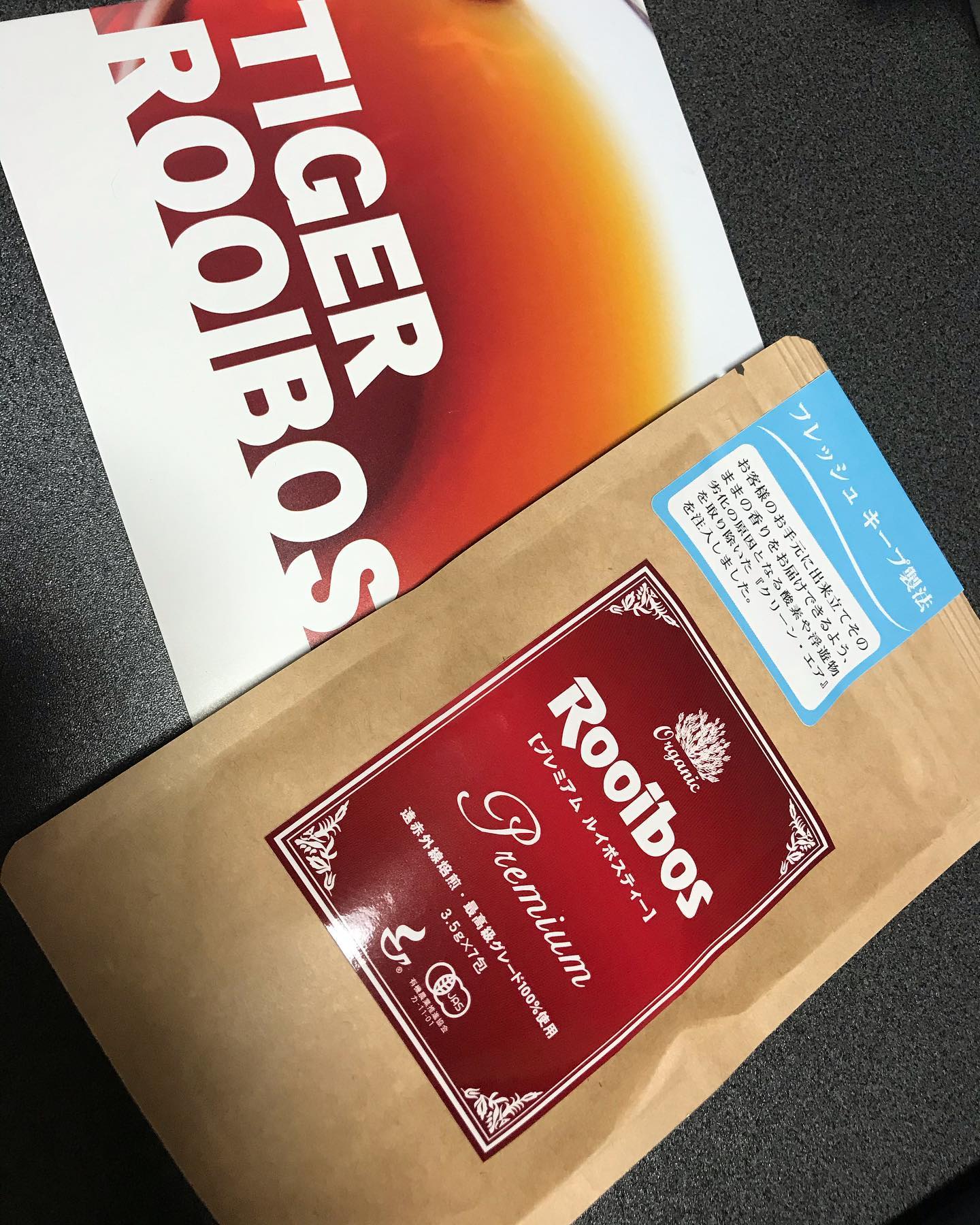 ルイボスティー大好き❤ このルイボスティーは ルイボスティーの中でも、オーガニック認証を取得した最高級グレードの茶葉を100%使用しました。 生葉(ナマハ)ルイボスティーは、蒸気を使うことであえて発酵を止める、日本の緑茶のような製法でつくられた特別なルイボスティーです。 遠赤焙煎で香りを高めたルイボスティー茶葉を、『フレッシュ・キープ製法』でその場で香りを閉じ込めました。 自社工場だからできる、『出来たての香りそのまま』を皆様へお届けします。 香りがいい❤️ #タイガールイボスティー #ルイボスティー #プレミアムルイボスティー #オーガニックルイボスティー #オーガニック生活 #ノンカフェイン #monipla #rooibosTIGER_fan