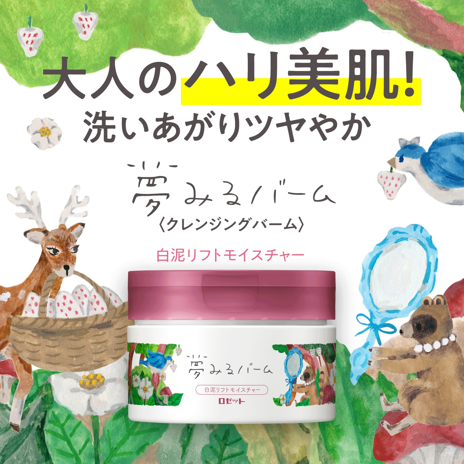 肌にやさしく、しっかり落とす。大人のハリ美肌を叶える1品5役の多機能クレンジング「夢みるバーム」。クレイ×オイル×酵素のトリプルアプローチでしっかりメイクをするっとオフしながら、大人のハリ美肌を叶えます。