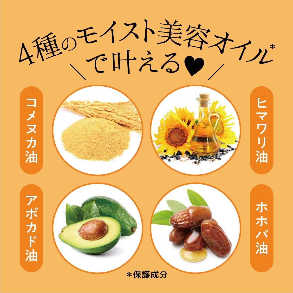 保湿力の高い4種のモイスト美容オイル*2の働きで