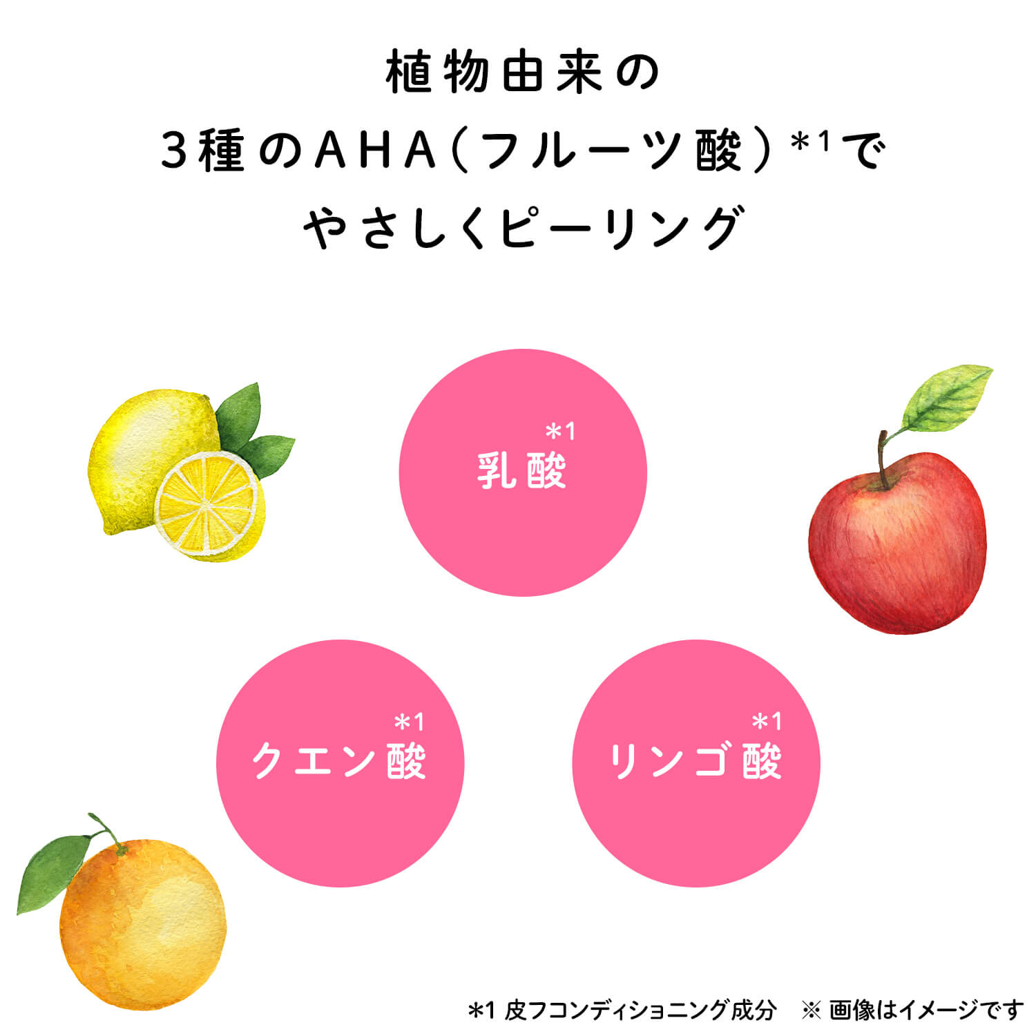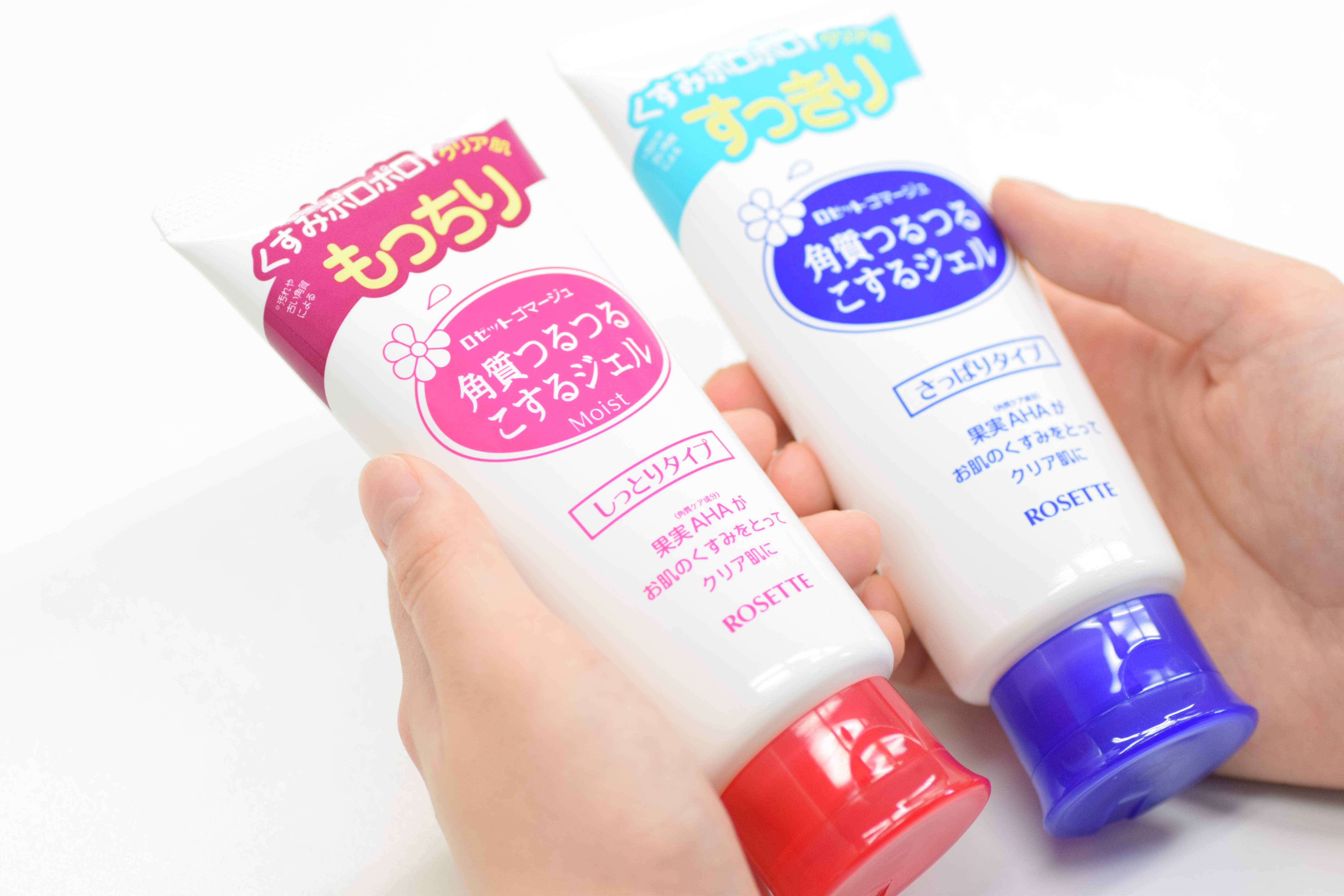 ロゼットゴマージュは20年以上愛され続けるロングセラー商品。果実由来のAHA*1のはたらきでくすみ*2をポロポロ落とすピーリングジェルです。週に1~2回の使用で、メイクのりの良い肌へ。
