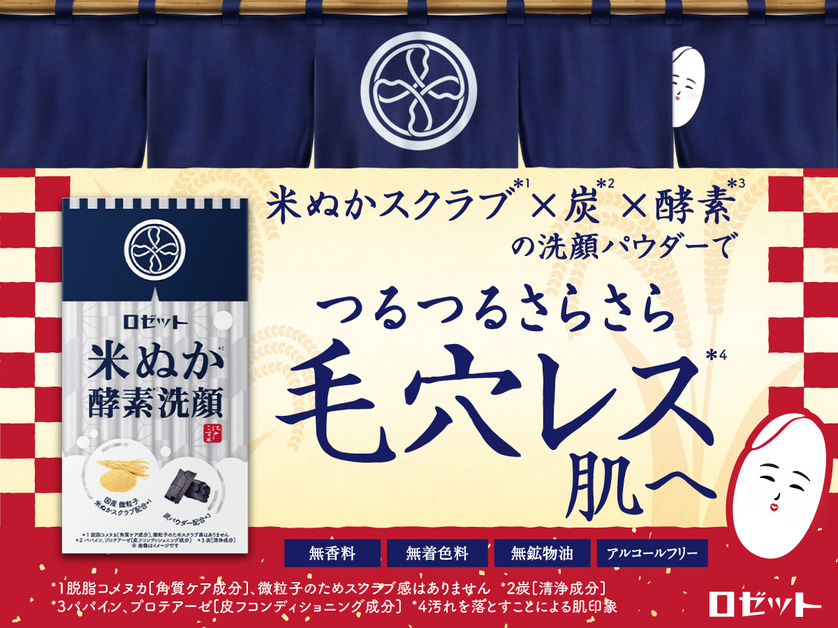 キメ細やかな肌が美人の条件だったといわれる江戸時代から愛用されていた、日本古来の美容成分「米ぬか*5」を配合した酵素*3洗顔パウダー。コシのあるもちもち泡で肌をなめらかに洗い上げ、キメを美しく整えます。