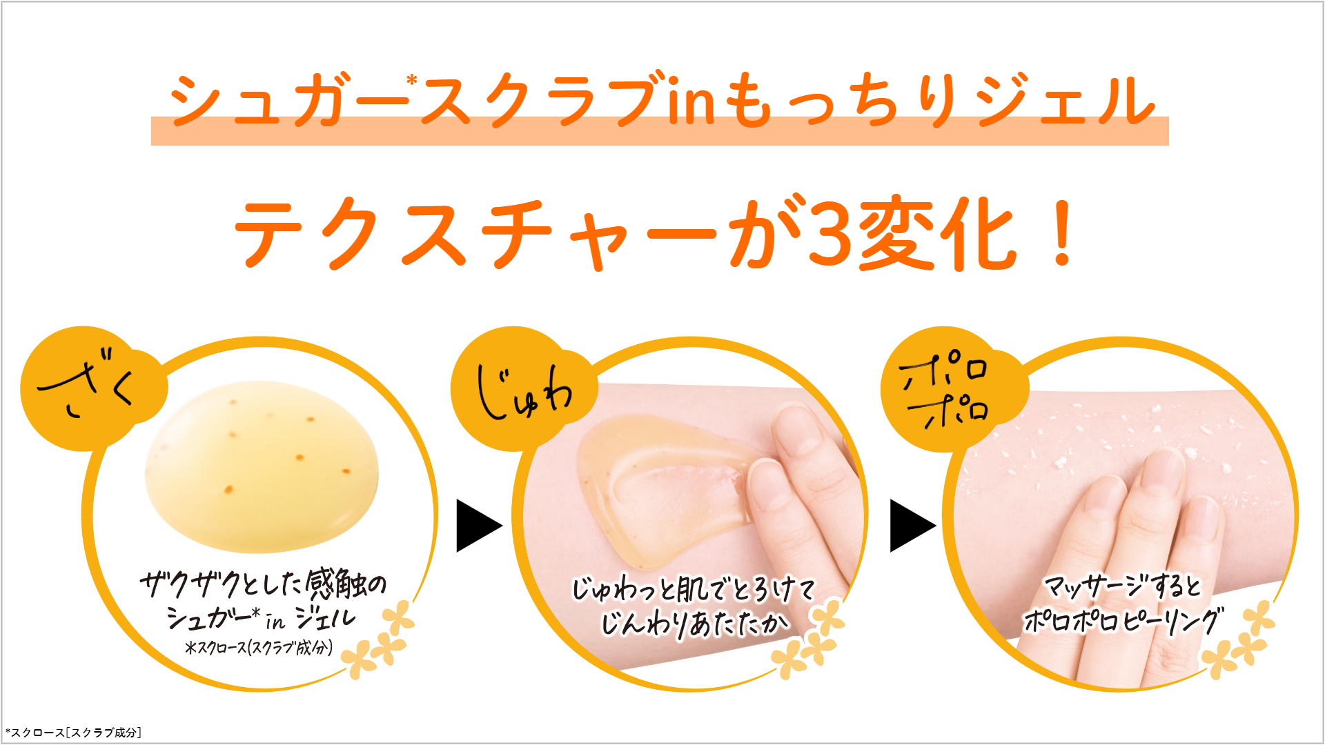 ザクザクしたシュガー※1スクラブinジェルが、肌の上でじゅわっととろけて、