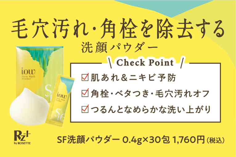 イオウ*1の力でつるすべ毛穴レスな光透肌*2へ。 肌あれ・ニキビを予防する新スキンケアブランド『 iow 』誕生! ほんのり黄色の泡の、イオウ*1配合洗顔パウダー。 イオウ*1×クレイ*3×酵素*4のトリプルパウダー処方で、毛穴汚れを落として肌あれ&ニキビを予防。使い続けるたび、透明感のあるつるすべ毛穴レスな光透肌*2へ導きます。 *1 清浄成分 *2 汚れを落とすことによる肌印象 *3 ベントナイト[清浄成分] *4 パパイン、プロテアーゼ、リパーゼ[清浄成分] レビュー数 : 150 |