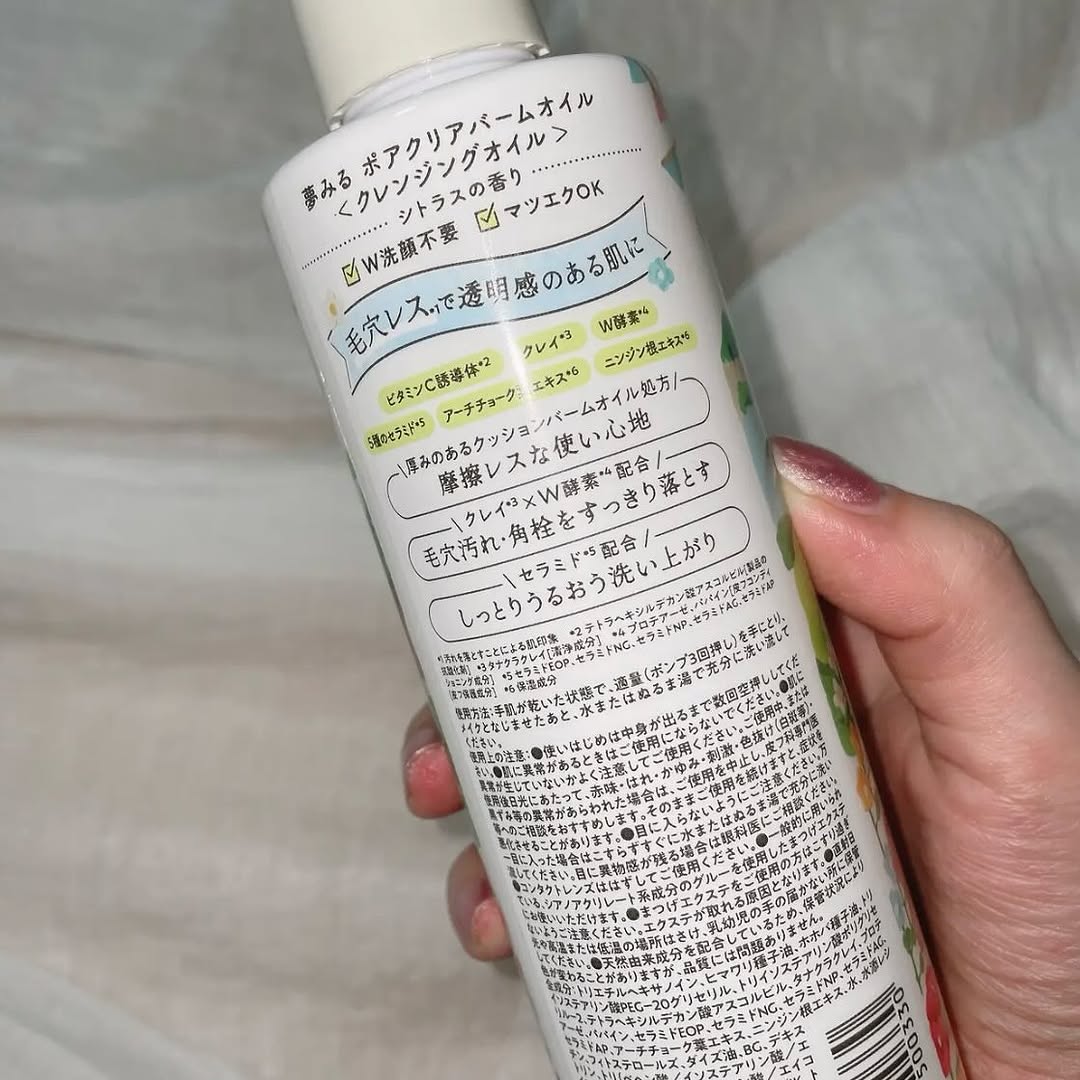 ロゼットからオイルクレンジングが出た✨ 夢みる ポアクリアバームオイル [クレンジングオイル] あの夢みるバームから出た クレンジングバーム発想の 摩擦レスなクレンジングオイル👀✨ 🍋ビタミンC誘導体*1配合 バームがとろけたような厚みのあるオイルで メイクや毛穴汚れ、角栓まですっきり◎ 毛穴レス*2な肌に🤍 オイルのメイク落ちの良さと、 バームのとろける使用感を合わせ持つ “クッションバームオイル処方”を採用✅ 🍋“クレイ*3×W酵素*4” 細かな汚れを吸着するタナクラクレイ*3と タンパク質を分解する2種の酵素*4を配合✨ メイクだけでなく毛穴の黒ずみ*5、 角栓や古い角質までケアできる🙆🏻♀️ 🍋5種のセラミド*6配合でうるおう洗い上がり🫧 メイクは落ちるけど、 皮脂も落ちすぎて乾燥しちゃうことあるけど、 これはそんなことなくて、良かったです🙂↕️ シトラスの香りで 爽やかなのも好きです🌿🍋 *1 テトラヘキシルデカン酸アスコルビル〔製品の抗酸化剤〕 *2 汚れを落とすことによる肌印象 *3 タナクラクレイ〔清浄成分〕 *4 プロテアーゼ、パパイン〔皮フコンディショニング成分〕 *5 古い角質による *6 皮フ保護成分 #PR #ロゼット株式会社 #ロゼット #rosette #夢みる #クレンジングオイル #夢みるポアクリアバームオイル #毛穴レス #毛穴ケア #黒ずみ #トーンアップ #角栓 #とろけ落ち #monipla #rosette_fan