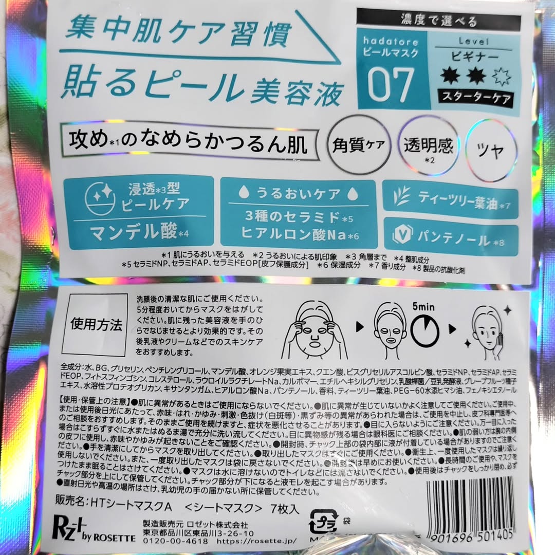 “貼るピール美容液”みたいな、角質ケアシートマスクがhadatore (ハダトレ*¹)から2月に発売! 浸透*²型ピールケア成分「マンデル酸*³」の濃度違いの2タイプ展開で、 今回わたしが使用したのはピールケア初心者向けのビギナータイプ「07」 やわらかなコットンシートで肌にぴたっと密着します。 さらっとしたテクスチャーの美容液がひたひたに入っているので液だれ注意💦 7日間の連続使用がおすすめとのことです! *1 マスクによるスキンケアの体感 *2 角層まで *3 整肌成分 ------------------------ hadatore ピールマスク 07 価格:770円(税込) ------------------------ #PR #ロゼット株式会社 #ロゼット #rosette #hadatore #ハダトレ #シートマスク #monipla #rosette_fan