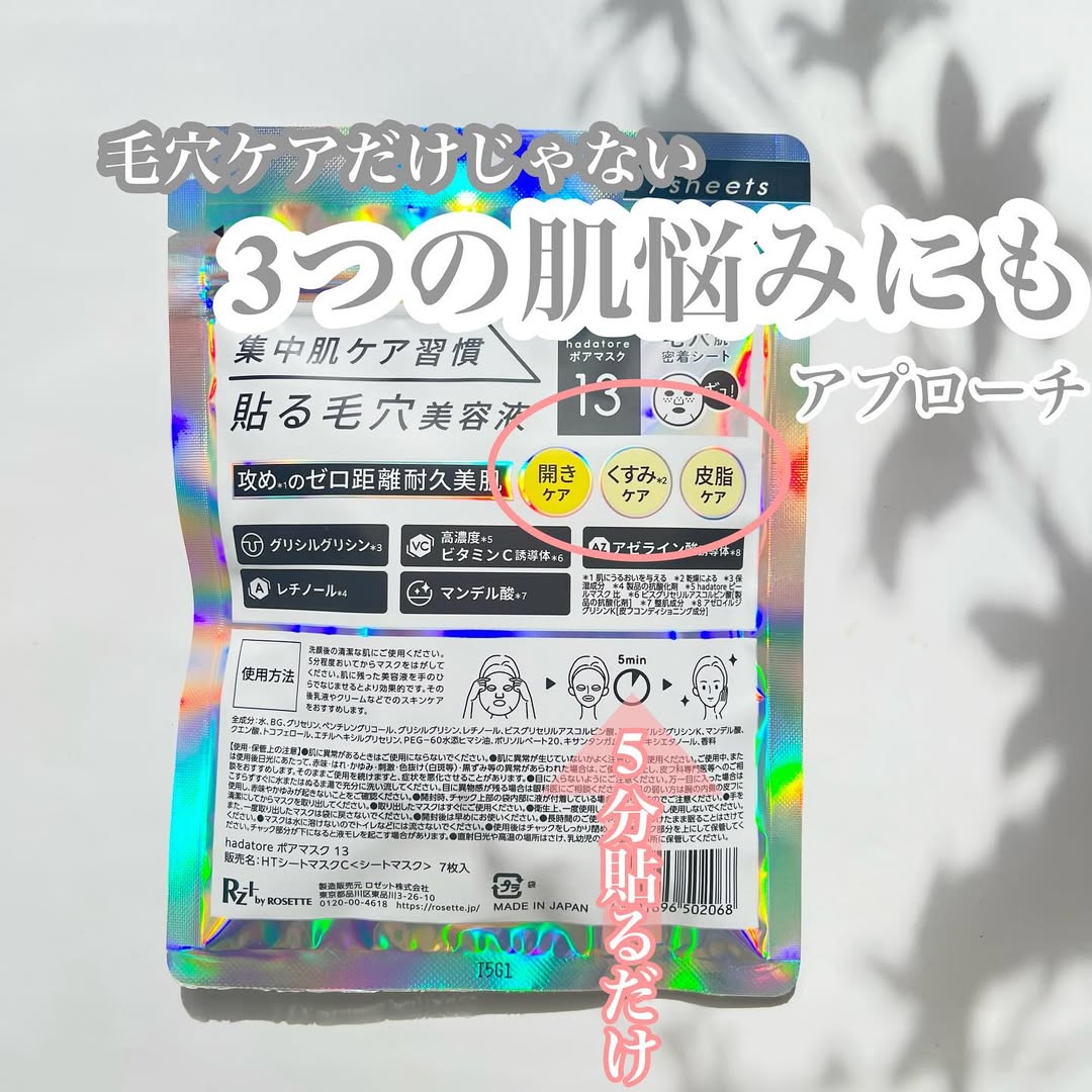 夏は気温、湿度とも 高いので 汗や皮脂が増加して 毛穴が開きっぱなしの状態になりやすく メイクの毛穴落ちも 目立つので 毛穴ケアは重要だと考えています。 ・ ・ そこで、 ロゼットさんの集中ケアプログラムマスク『hadatore』から \2025年8月新発売!/ 新・毛穴ケアシートマスクhadatore ポアマスク 13 が新発売になります。 このシートマスク ぽっかり開いた毛穴肌 をひきしめながら、 くすみ*¹毛穴や皮脂によるベタつきも同時にケア! してくれ 貼るだけで集中毛穴ケアできるシートマスクだそうです。 シートがある程度 厚みもあって しなやかなシートで 肌に貼った時 ピタッて肌に密着するので 家事をしながらでも ケアできます。 ・ ・ 1パック7枚入りで パッケージが キラキラしてて めっちゃキレイで テンション上げてもらえますよ〜⭐︎ *1 乾燥による #PR #ロゼット株式会社 #ロゼット #rosette #hadatore #ハダトレ #シートマスク #monipla #rosette_fan