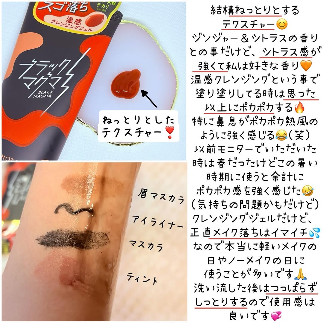 #PR ロゼットさんのモニターに当選して【ブラックマグマ ホットクレンジングジェル】と【ロゼット洗顔パスタ ディープブラック】の2点をお試しさせていただきました😊 毛穴ガチ勢必見!?本気のW使い🤣(笑) ﹊ ﹊ ﹊ ﹊ ﹊ ﹊ ﹊ ﹊ ﹊ ﹊ ﹊ ﹊ ﹊ ﹊ ﹊ ﹊ ﹊ ﹊ ﹊ ﹊ 【ブラックマグマ ホットクレンジングジェル】 🌟“マグマのような”どろっと温感クレンジングジェル🔥 🌟どろっと温感ジェル×4種のミネラルパウダー*1 の毛穴ディープクリア処方❣️ 🌟じんわり肌をほぐしながら、ガンコな毛穴の黒ずみ*2・角栓・皮脂汚れもメイクもごっそり落とす💪 🌟洗い上がりはつっぱらずすっきり、毛穴の目立たないつるすべ肌*3 へ導く✨️ *1 溶岩末、火山土、炭、モロッコ溶岩クレイ[清浄成分] *2 古い角質 *3 汚れを落とすことによる肌印象 実際に使ってみて➝ねっとりするテクスチャー😊ジンジャー&シトラスの香りだけどシトラスが強めな気がする💚 温感クレンジングなので、塗り塗りすればするほどポカポカ🔥特に鼻息がポカポカホットな鼻息に感じる👃🔥(笑) 前にもこの商品のモニターをさせてもらったけど、その時は春だったからここまでは熱さを感じなかった!(もちろん火傷するほど熱いとかではないよ🤣)夏だからか春の時よりポカポカを強く感じた気がした😂 クレンジングジェルだけど、私のメイクとは相性悪いのかメイク落ちはいまいち😭なので軽いメイクやノーメイクの日に使ってます❣️ 洗い流した後はつっぱらずしっとりするのでメイク落ち以外は満足☺️💞 ﹊ ﹊ ﹊ ﹊ ﹊ ﹊ ﹊ ﹊ ﹊ ﹊ ﹊ ﹊ ﹊ ﹊ ﹊ ﹊ ﹊ ﹊ ﹊ ﹊ 【ロゼット洗顔パスタ ディープブラック】 🌟ロゼットが誇るロングセラー洗顔ブランド「ロゼット洗顔パスタ」のクレイシリーズ🖤 🌟肌悩みに合わせたキメ細かなクレイパウダー*1 を独自の製法で練り込み、豊かな泡立ちと心地よい洗い上がりが特長の洗顔料😶🌫️ 🌟ブラッククレイ*2 と炭*1、酵素*3 を配合した角栓ざらつき対策洗顔料👍 🌟もっちりと弾力のある黒密泡が、角栓や毛穴奥の汚れをごっそり洗い落とし、毛穴さっぱりつるつるの洗い上がり😊 *1 清浄成分 *2 海シルト[清浄成分] *3 リパーゼ[皮フコンディショニング成分] 実際使ってみて➝チューブから出した時は炭のような黒🖤 泡立てネットなしだと泡立ちはイマイチだけど(私自身ネットなしの時はあまり泡立てない笑)ねっとりした塗り心地で泥パックしたように感じた😂 泡立てネットを使うともっちりで弾力ある泡で肌に吸着するような感じがした😊💕 泡立てネット使った洗顔ももちろん好きだけど、泡立てネットなしでも意外と使用感が好きで泡立てネット使うのダルいなぁって日(面倒くさがり🙋🏻♀️)でも罪悪感なく(笑)使えるのがいい😍 香りはすっきりシトラスハーブの香り🌿すっきりだからかそんなに強い香りではないし、この香り無理!って人はそんなにいないんじゃないかなぁ?と思いました☺️ そして一番嬉しかったのは、洗い流した後にキュッキュ感がほぼなかったこと🩷私はキュッキュ感が苦手なので(🙏)これは嬉しかった😍キュッキュ感が少ないので洗い流した後の肌を触ってもキュッキュせずしっとり感も感じました🫶 ﹊ ﹊ ﹊ ﹊ ﹊ ﹊ ﹊ ﹊ ﹊ ﹊ ﹊ ﹊ ﹊ ﹊ ﹊ ﹊ ﹊ ﹊ ﹊ ﹊ 今回ブラックマグマ ホットクレンジングジェルを使った後にロゼット洗顔パスタ ディープブラックを使うというW使いをしたけど、もちろんすぐに毛穴に効果があった!とは言えない😅温感&ブラッククレイ、炭でなんか効果ありそうだなという気持ちにはなる(笑)なので、今日はやるぞー!って日にホットクレンジングジェルでしっかりマッサージしてディープブラックで洗うというのをやってます🤣 毛穴ケアはやっぱり難しいし、永遠の悩みだけど気持ちだけでも頑張りたいので毛穴がいつも以上に気になった日などに使っていきたいなと思いました🥰 ※ブラックマグマ ホットクレンジングジェルは現在公式ショップだと180g1320円。温感初めてやって苦手だった人もいたから、温感ジェルをお試しするには比較的手に取りやすい価格かなと思います☺️ この度はお試しさせていただきありがとうございました😊 #PR #ロゼット株式会社 #ロゼット #rosette #ブラックマグマ #ホットクレンジングジェル #ロゼット洗顔パスタ #ディープブラック #毛穴 #毛穴ケア #角栓 #monipla #rosette_fan