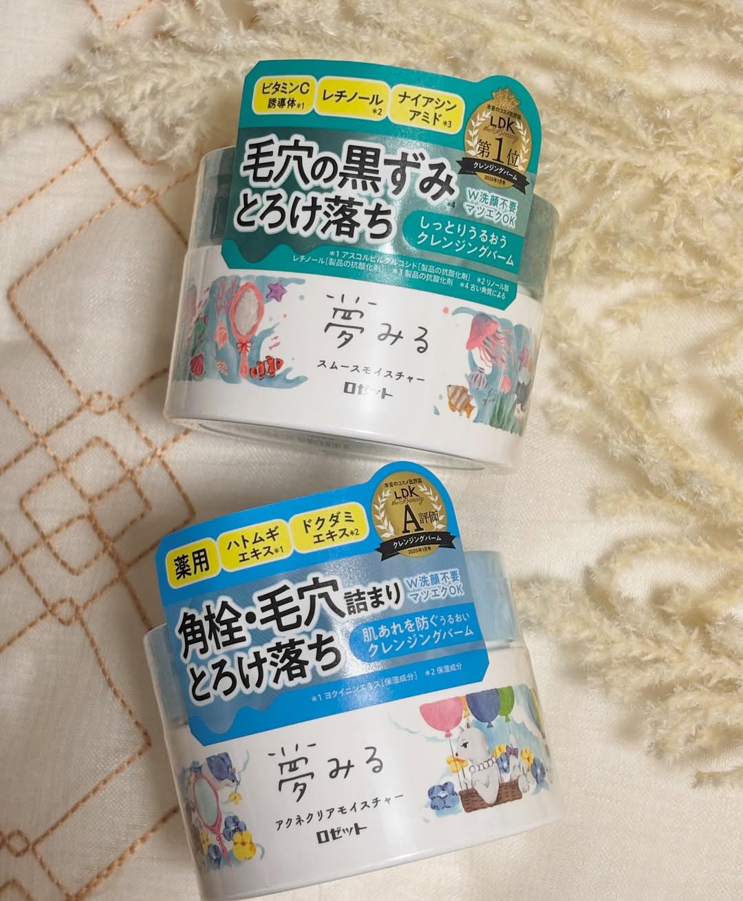 \あなたはどっち派?/ 肌悩みに合わせて選べるクレンジング 「夢みる」 毛穴の黒ずみ※1とろけ落ち 「夢みる スムースモイスチャー」 と 毛穴詰まり・角栓とろけ落ち 「夢みる アクネクリアモイスチャー【医薬部外品】」を使い比べてみました😊✨ ※1 古い角質による 「夢みる スムースモイスチャー」 \ POINT / ●3種のビタミン配合✨✨ ビタミンC誘導体※2×レチノール※3×ナイアシンアミド※4 ※2 アスコルビルグルコシド[製品の抗酸化剤] ※3 リノール酸レチノール[製品の抗酸化剤] ※4 製品の抗酸化剤 ●クレイ※5 × W酵素※6で 毛穴汚れ・角栓をすっきりオフして毛穴レス肌※7に導きます! ※5 タナクラクレイ[清浄成分] ※6 プロテアーゼ、リパーゼ[皮フコンディショニング成分] ※7 汚れを落とすことによる肌印象 ●3種のセラミド※8配合で しっとりうるおう洗い上がり ※8 セラミドNG、セラミドNP、セラミドAP[皮フ保護成分] ●W洗顔不要 ●マツエクOK ●ハーバルシトラスの香り 「夢みる アクネクリアモイスチャー【医薬部外品】」 \ POINT / ●Wクレイ※9 × 酵素※10でニキビのもととなる 毛穴詰まりや角栓がとろけ落ち✨✨ ※9 含硫ケイ酸Al、カオリン[清浄成分] ※10 リパーゼ(2)[皮フコンディショニング成分] ●3種のセラミド※11と、うるおいを与える肌ケア成分※12配合✨✨ しっとりうるおう洗い上がり。 ※11 N-ステアロイルジヒドロスフィンゴシン、ステアロイルフィトスフィンゴシン、ヒドロキシステアリルフィトスフィンゴシン[皮フ保護成分] ※12 ヨクイニンエキス、ドクダミエキス、カワラヨモギエキス[保湿成分] ●大人ニキビ・肌あれを防ぐ薬用クレンジングバーム 肌あれを防ぐ有効成分グリチルレチン酸ステアリル配合❣️ どちらも肌にのせると肌の温度でとろけて、くるくると馴染ませるとメイクが浮き上がりました👌 私はいつも、がっつりアイメイクもしますが どちらのタイプもメイク落ちが良く使いやすいです❣️ 洗った後の肌もしっとりして混合肌の私にも合っていました👌 その日の肌悩みに合わせて使い分けしようかな😊✨と思います。 #PR #ロゼット株式会社 #ロゼット #rosette #夢みる #クレンジングバーム #夢みるスムースモイスチャー #夢みるアクネクリアモイスチャー #毛穴ケア #とろけ落ち #monipla #rosette_fan