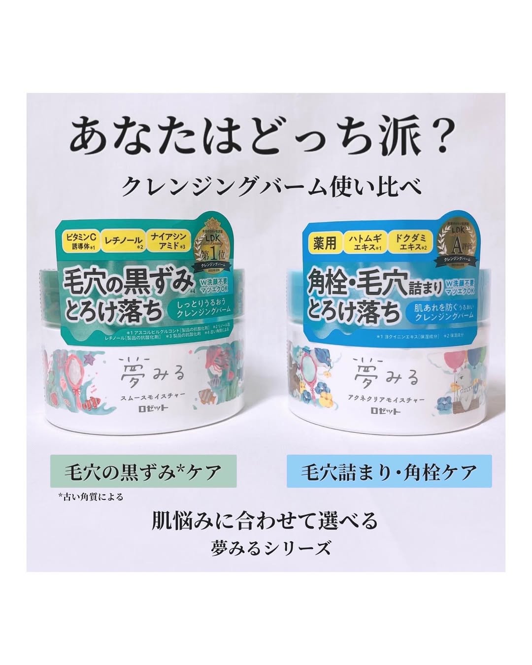 【モニター】 ロゼット 『夢みる スムースモイスチャー』 『夢みる アクネクリアモイスチャー』 𓈒𓂂𓂃◌𓈒𓐍 あなたはどっち派? 夢みるクレンジングバーム使い比べ! 💚毛穴の黒ずみ*には 【夢みる スムースモイスチャー】 🩵毛穴詰まり・角栓には 【夢みる アクネクリアモイスチャー】 ✤ 💚夢みる スムースモイスチャー グリーンのパッケージは毛穴悩みさん向け 手にとるとすぐにとろける だいぶ柔らかめなテクスチャーです 優しく洗えてするんとメイク落ち! 洗い上がりはしっとり✨ ハーバルシトラスの香り🌿 🩵夢みる アクネクリアモイスチャー 大人ニキビにお悩みの人向け【医薬部外品】 スムースモイスチャーよりちょっとだけ硬め けどすぐとろけるのは同じ! さっぱりとする洗い上がり✨ フローラルハーブの香り🌿 クセのある香りで少し苦手… ✤ 使い比べてみて。 使い心地は アクネクリアモイスチャーの方が好き 香りは スムースモイスチャーの方が好き って感じでした 肌の調子に合わせて使い分けてもいいかも と思いました😌 𓈒𓂂𓂃◌𓈒𓐍 #PR #ロゼット株式会社 #ロゼット #rosette #夢みる #クレンジングバーム #夢みるスムースモイスチャー #夢みるアクネクリアモイスチャー #毛穴ケア #とろけ落ち #monipla #rosette_fan ₂₀₂₅ ₁₆₁