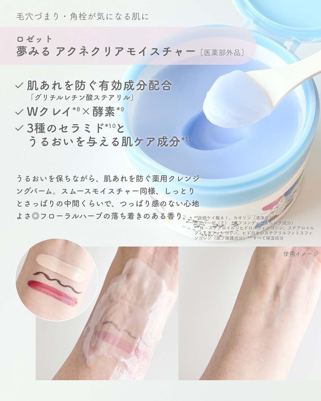 \ 夢みるバーム どっちが好き?🫧 / ┈ロゼットさまからご提供いただきました 肌悩みに合わせて選べるクレンジングバーム「夢みる」シリーズ💭 とろけるバームでメイクや毛穴汚れをオフしながら、なめらかな洗い上がりに。 毛穴の黒ずみ*¹が気になる肌にも、毛穴づまり・角栓が気になる肌にも、それぞれ寄り添う2種類✨ ☑ 夢みる スムースモイスチャー ⋯⋯⋯⋯⋯⋯⋯⋯⋯⋯⋯⋯ ✓3種のビタミン(ビタミンC誘導体*²・レチノール*³・ナイアシンアミド*⁴) ✓クレイ*⁵ × W酵素*⁶ ✓3種のセラミド*⁷ とろっとしたバームが肌の上でスルッと溶けて、マッサージしているような心地よさ。 洗い上がりはしっとりしすぎず、さっぱりしすぎずのちょうど中間。つっぱり感も気にならなかったよ。 ハーバルシトラスの爽やかな香り🌿 ☑ 夢みる アクネクリアモイスチャー[医薬部外品] ⋯⋯⋯⋯⋯⋯⋯⋯⋯⋯⋯⋯ ✓肌あれを防ぐ有効成分「グリチルレチン酸ステアリル」配合 ✓Wクレイ*⁸ × 酵素*⁹ ✓3種のセラミド*¹⁰とうるおいを与える肌ケア成分(ヨクイニンエキス・ドクダミエキス・カワラヨモギエキス*¹¹) うるおいを保ちながら、肌あれを防ぐ薬用クレンジングバーム。 スムースモイスチャー同様、しっとりとさっぱりの中間くらいで、つっぱり感のない心地よさ◎ フローラルハーブの落ち着きのある香り🌷 どちらもやさしい使いごこちで、気分や肌の調子に合わせて使い分けるのも楽しい♡ あなたはどっち派?ˎˊ˗ *¹古い角質による *²アスコルビルグルコシド(製品の抗酸化剤) *³リノール酸レチノール(製品の抗酸化剤) *⁴製品の抗酸化剤 *⁵タナクラクレイ(清浄成分) *⁶プロテアーゼ、リパーゼ(皮フコンディショニング成分) *⁷セラミドNG、セラミドNP、セラミドAP(皮フ保護成分) *⁸含硫ケイ酸Al、カオリン(清浄成分) *⁹リパーゼ(2)(皮フコンディショニング成分) *¹⁰N-ステアロイルジヒドロスフィンゴシン、ステアロイルフィトスフィンゴシン、ヒドロキシステアリルフィトスフィンゴシン(皮フ保護成分) *¹¹すべて保湿成分 ┈┈┈┈┈┈┈┈┈┈┈ 30代コスメオタクが“本音レビュー”投稿中ˎˊ˗ いいね・フォロー・コメント嬉しいです♡ 他の投稿はこちら▷ @__momori.__ ┈┈┈┈┈┈┈┈┈┈┈ #PR #ロゼット株式会社 #ロゼット #rosette #夢みる #クレンジングバーム #夢みるスムースモイスチャー #夢みるアクネクリアモイスチャー #毛穴ケア #とろけ落ち #monipla #rosette_fan