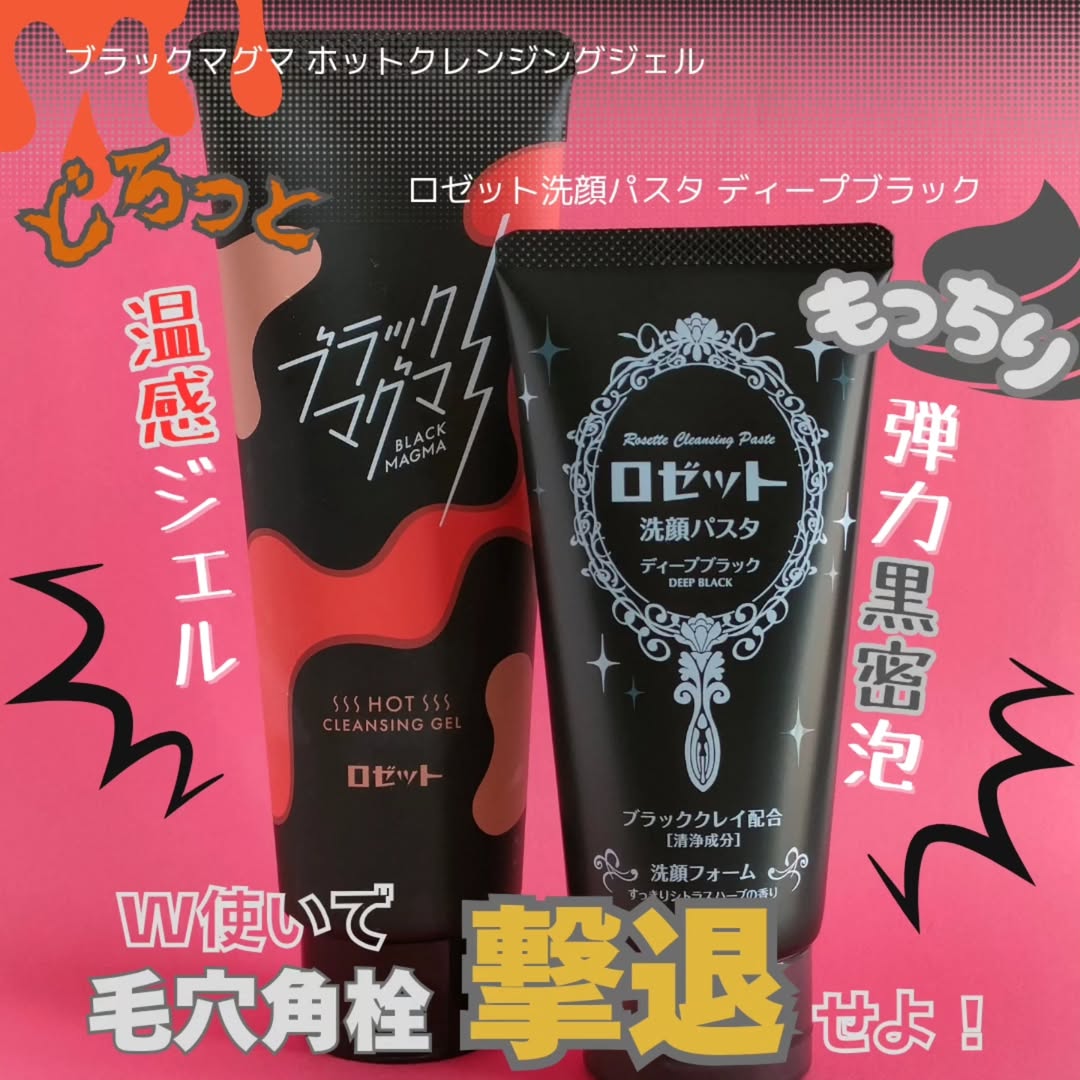 #PR #ロゼット株式会社 #ロゼット #rosette #ブラックマグマ #ホットクレンジングジェル #ロゼット洗顔パスタ #ディープブラック #毛穴 #毛穴ケア #角栓 #monipla #rosette_fan --------------------------------- ブラックマグマ ホットクレンジングジェル ロゼット洗顔パスタ ディープブラック --------------------------------- ロゼットが提案する「毛穴角栓撃退セット」使ってみました! わたくし、みかん毛穴星人なんで、ちょっとやそっとの毛穴ケアアイテムじゃ満足できないんですけど、これはなかなか良かった♡ まず、まるでマグマのようなどろっとした温感ジェルの『ブラックマグマ ホットクレンジングジェル 』🌋 粘りがあってべっとり毛穴に張り付く感じのテクスチュア。毛穴ディープクリア処方とホカホカ温感で、メイクやガンコな毛穴の黒ずみ※1 をオフしてくれます。 そして、「ブラッククレイ※2」「炭※3」「酵素※4」を含んだ黒いフォームタイプの洗顔料『ロゼット洗顔パスタ ディープブラック 』でトドメの毛穴ケア。もっちりとしたきめ細かい濃密な泡を転がすように洗えば、つっぱらずつるつるのキメのととのった仕上がりです✨ わたしは混合肌ですが、洗顔後の乾燥は気にはならなかったかな。2品ともDSでプチプラで売ってるので、毛穴汚れに悩んでいる方はぜひ挑戦してみてね。 ※1 古い角質 ※2 海シルト[清浄成分] ※3 清浄成分 ※4リパーゼ[皮フコンディショニング成分]