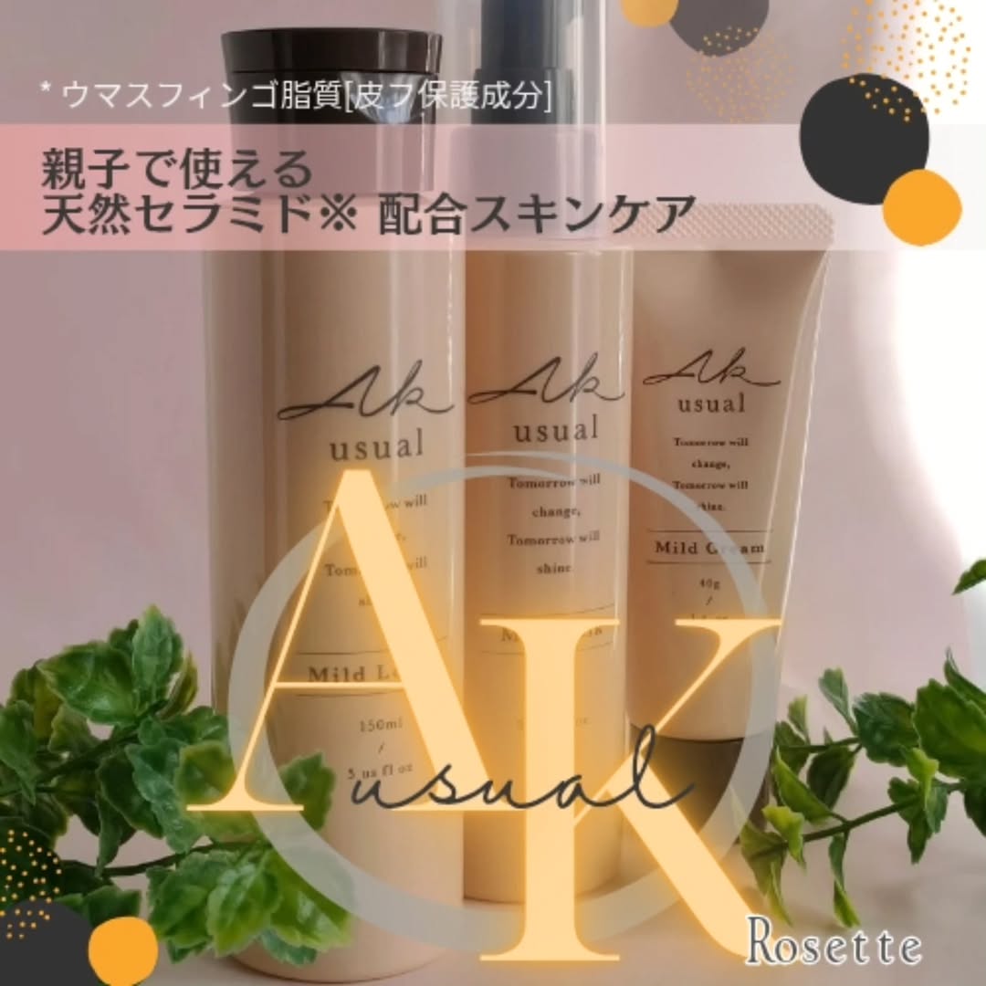 #PR #ロゼット株式会社 #ロゼット #AKusual #セラミド #スキンケア #乾燥肌 #敏感肌 #低刺激 #monipla #rosette_fan セラミド*1配合スキンケア『AK usual(エーケー ユージュアル)』の化粧水、乳液、クリームの3アイテム使用しています。 ロゼットさんの商品だけど、ドラッグストアなどの一般小売店では取り扱ってない通販限定ブランドなので、知らない方も多いんじゃないかな? --------------------------------- 薬用u ローション 150mL[化粧水] --------------------------------- ナノ化した天然セラミド*1配合で、とろみがありながらもスッとした肌馴染みの良さが魅力♡ 重ね付けするともっちもち! --------------------------------- 薬用u ミルク 110mL[乳液] --------------------------------- 使いやすいポンプ式ボトルで、伸びも良くワンプッシュで広範囲の保湿ケアができます。秋冬の乾燥に負けない心強い乳液です。 --------------------------------- 薬用u クリーム 40g[クリーム] --------------------------------- 高保湿な乳液のさらに上を行く濃厚な使い心地。混合肌のわたしは、顔よりボディに使うことが多いです。持ち運びしやすいサイズなので、ハンドケアで出先で頻繁に使っています。 --------------------------------- お知らせ --------------------------------- ロゼットの公式ECサイトでは、初回限定(1世帯1個まで)ですが、『AK usual スターターキット』が購入できるみたい。気になる方はチェックしてみてね☺✨ *1 ウマスフィンゴ脂質〔皮フ保護成分〕