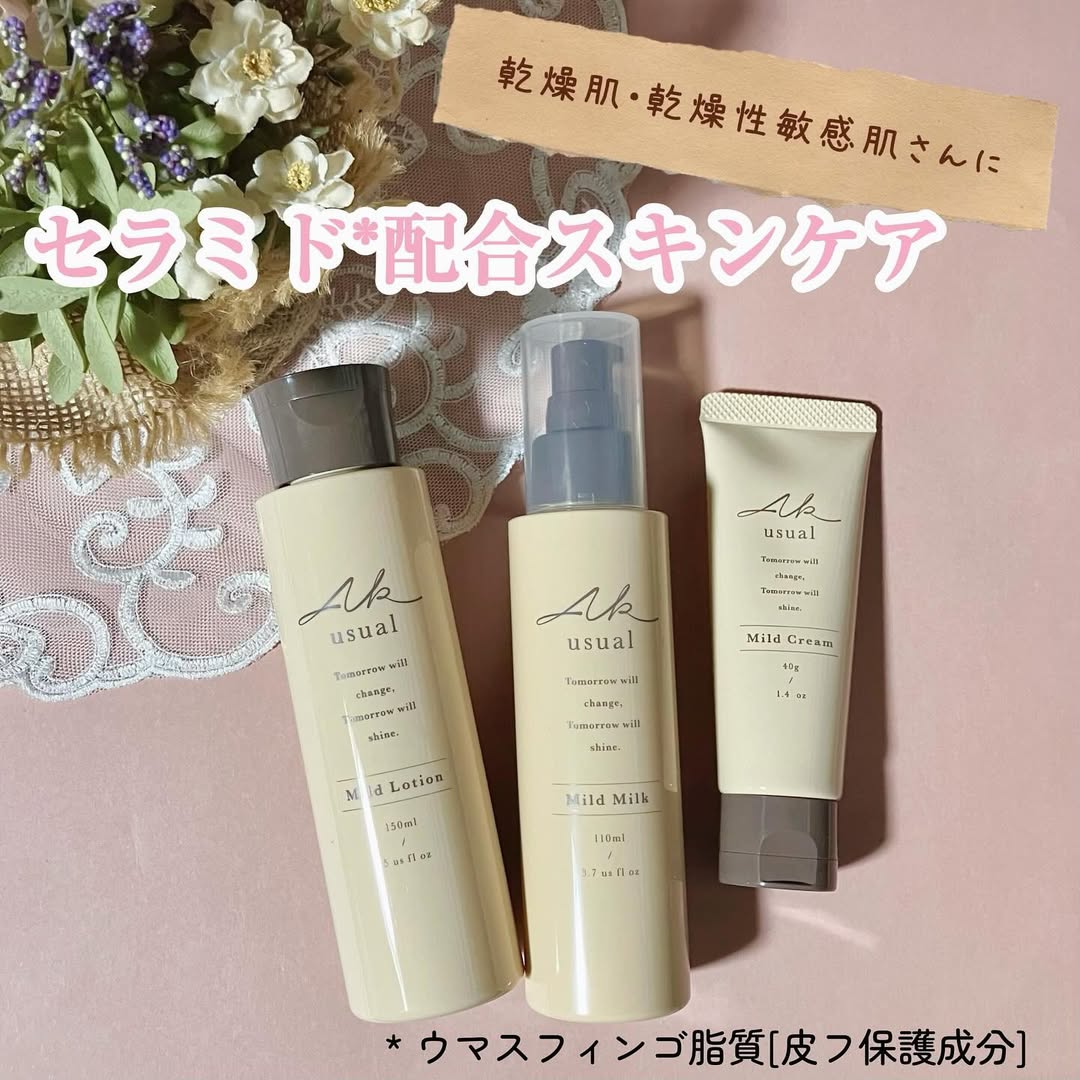 . 子どもから大人まで、乾燥肌・乾燥性敏感肌に悩む方のための天然セラミド*配合スキンケア「AK usual」をご紹介させていただきます♪ AK usual(エーケーユージュアル) 薬用u ローション 薬用u ミルク 薬用u クリーム かさつきがちな肌をしっとりうるおす、天然セラミド*配合のスキンケア/ * ウマスフィンゴ脂質[皮フ保護成分] <薬用u ローション> 独自技術でナノ化した天然セラミドで肌なじみが良く、うるおいに満ちた肌へ導きます。 少しとろみのあるみずみずしいテクスチャ。 さらっとした肌心地でさっぱり使える感じ! ブースターとして使えるアイテムです。 <薬用u ミルク> のびが良く、やさしく肌になじんで乾燥や肌あれを予防。 全身のスキンケアにや赤ちゃんの保湿にも◎ なめらかで柔らかく、伸びのいいテクスチャー。さっと使えて、しっとりしていてお肌のカサつきケアにぴったり* <薬用u クリーム> しっとりするのにべたつかない濃厚な感触のテクスチャーで、肌のうるおいを保ちます。 やや硬さがありしっかり保湿。なめらかに広がって、うるおいを最後に閉じ込められるようにつけられました! すべてのアイテムに肌あれを防ぐ有効成分、グリチルリチン酸2Kが配合されているので、ちょっとした肌荒れケアにもおすすめです(o^^o) #PR #ロゼット株式会社 #ロゼット #AKusual #セラミド #スキンケア #乾燥肌 #敏感肌 #低刺激 #monipla #rosette_fan