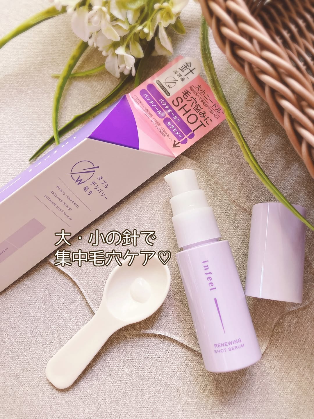 ロゼット infeel リニューイングショットセラム💜 今話題の!! 美容成分※1を配合!🌿 大・小の針※2で 肌に届ける※3アプローチ✨ 日々のケアに取り入れることで 毛穴の目立ちにくいなめらかな肌印象に導いてくれます♡ マイルドな使い心地だから 針美容液が初心者さんにもオススメです✨ ※1保湿成分 ※2加水分解カイメン[感触改良剤] ※3 角層まで #PR #ロゼット株式会社 #ロゼット #rosette #infeel #リニューイングショットセラム #毛穴 #インフィール #monipla #rosette_fan