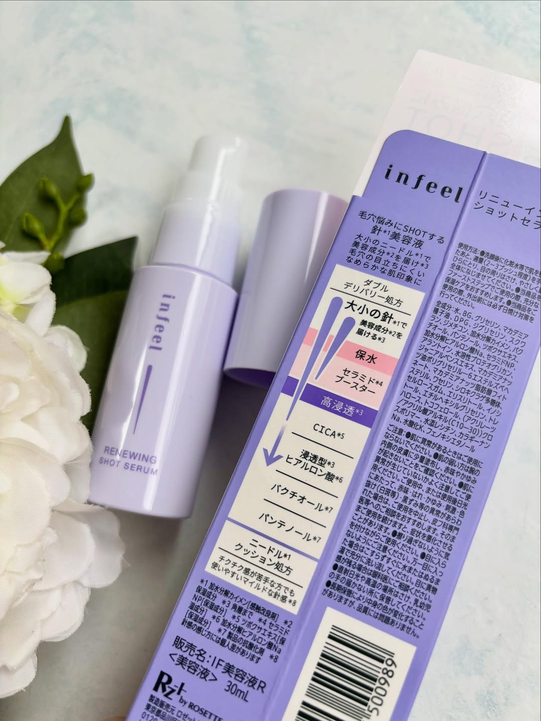𓈒 𓏸 𓐍 𓂃 𓈒𓏸 𓂃◌𓈒𓐍 𓈒 ピーリングや洗顔でお世話になっている ロゼットさまの infeel リニューイングショットセラム をお試ししました😊 長年の毛穴に悩んでいる私にぴったりの 毛穴悩みをケアする美容液で 針成分約750,000本配合が配合されています💡 私は洗顔後にブースター、化粧水で肌を整えたあと、適量(2~3プッシュ程度)を使用しました。目の周りは避けます。 その後クリームを塗ります。 針の美容液が好きなので、私はチクチク感気にならない方ですが、マイルドな使い心地だと思います。 普段の美容液の代わりに使用することにしたのでステップは増えませんし私は使いやすいと思いました。 毛穴の開きが気になっているので しっかりケアしたいです❣️ #PR #ロゼット株式会社 #ロゼット #rosette #infeel #リニューイングショットセラム #毛穴 #インフィール #monipla #rosette_fan