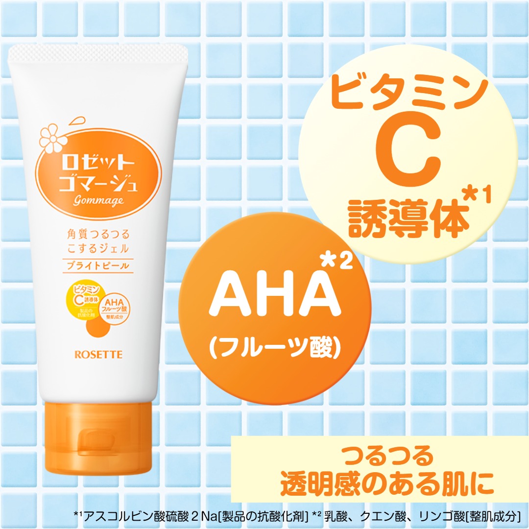 *1古い角質 *2アスコルビン酸硫酸2Na[製品の抗酸化剤]*3乳酸、クエン酸、リンゴ酸[整肌成分] *4ノイバラ果実エキス[保湿成分]