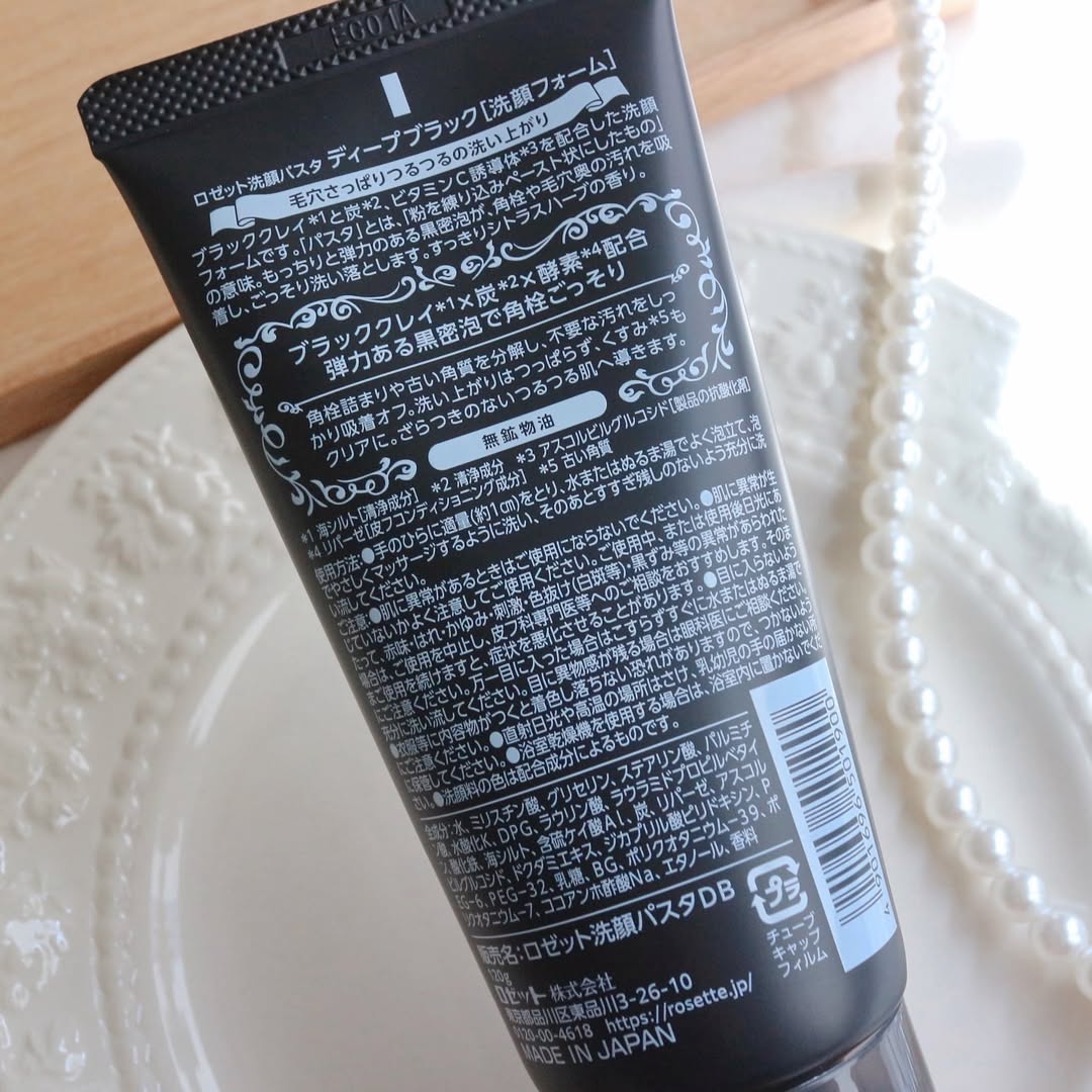 ロゼット洗顔パスタ ディープブラックはブラッククレイ*2と炭*1、酵素*3を配合した角栓ざらつき対策洗顔料です👌