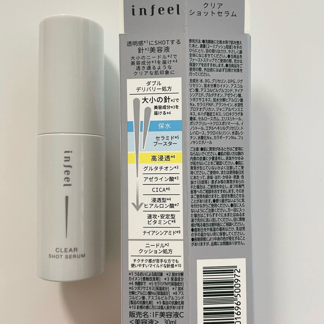 【透明感*¹にSHOTする針*²美容液】 大小異なるサイズの針*²配合。美容成分*³を多角的*⁴に肌に届ける*⁵美容液。 針*²成分約600,000本配合*⁶を配合しながら、チクチク感が苦手な方でも使いやすいマイルドな針感*⁷が特徴です! 速攻・安定型ビタミンC*⁸・グルタチオン*³・ナイアシンアミド*⁹を配合。透き通るようなクリアな肌印象に導きます。 *1 うるおいによる肌印象 *2 加水分解カイメン[感触改良剤] *3 保湿成分 *4 美容液・針による *5 角層まで *6 1製品あたり *7 針感の感じ方には個人差があります *8 アスコルビン酸、アスコルビルグルコシド[製品の抗酸化剤] *9 製品の抗酸化剤