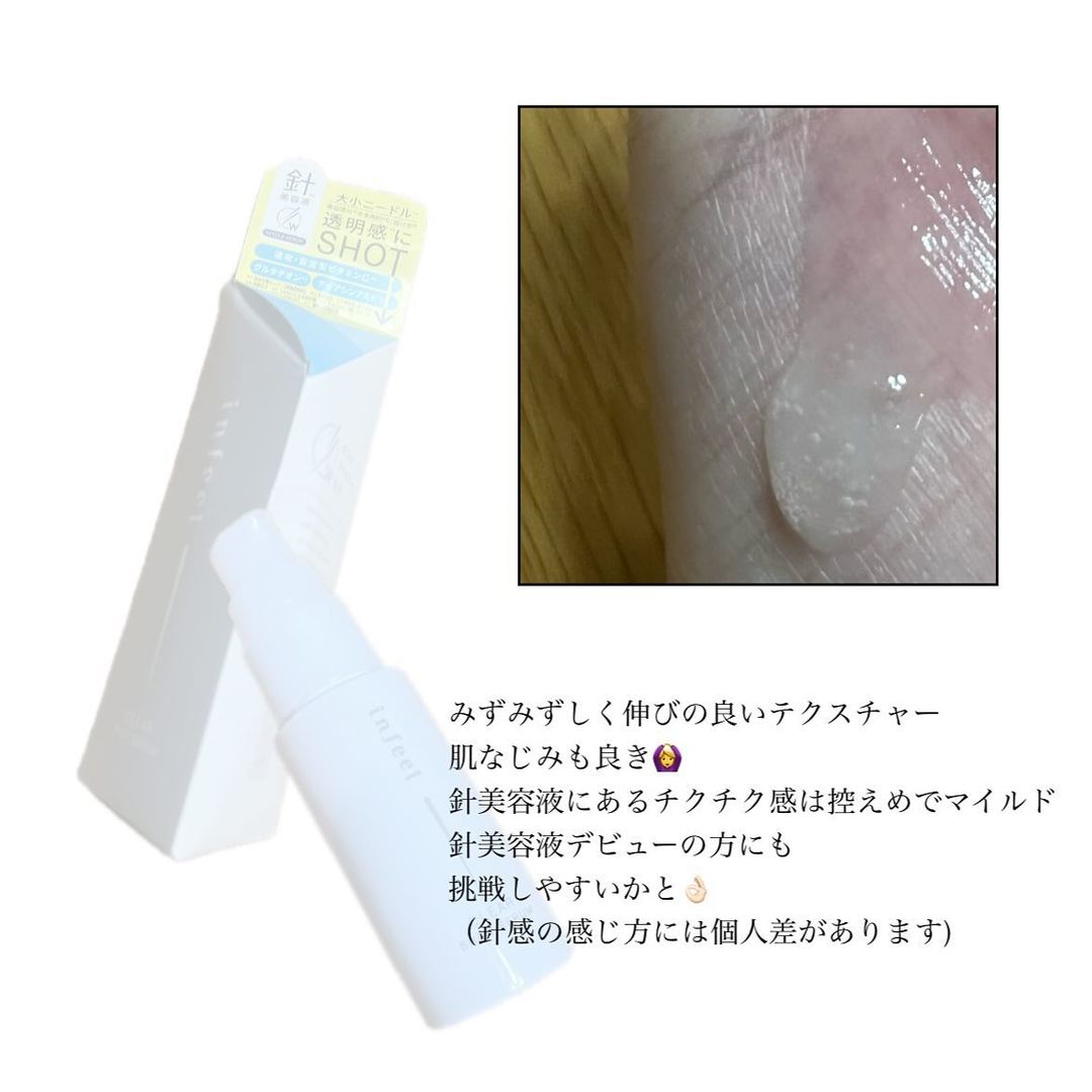【透明感*¹にSHOTする針*²美容液】 大小異なるサイズの針*²配合。美容成分*³を多角的*⁴に肌に届ける*⁵美容液。 針*²成分約600,000本配合*⁶を配合しながら、チクチク感が苦手な方でも使いやすいマイルドな針感*⁷が特徴です! 速攻・安定型ビタミンC*⁸・グルタチオン*³・ナイアシンアミド*⁹を配合。透き通るようなクリアな肌印象に導きます。 *1 うるおいによる肌印象 *2 加水分解カイメン[感触改良剤] *3 保湿成分 *4 美容液・針による *5 角層まで *6 1製品あたり *7 針感の感じ方には個人差があります *8 アスコルビン酸、アスコルビルグルコシド[製品の抗酸化剤] *9 製品の抗酸化剤