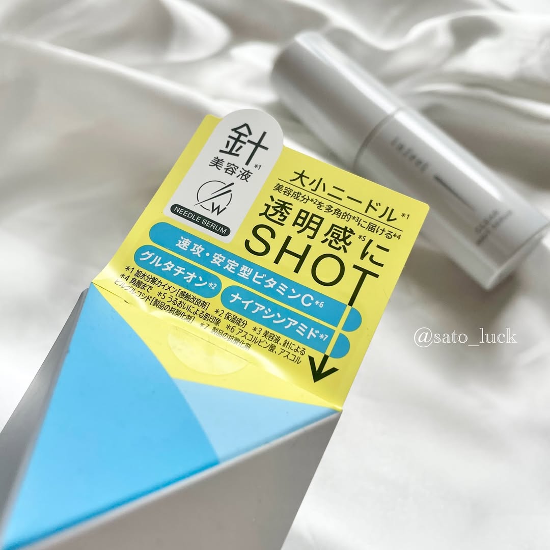 【透明感*¹にSHOTする針*²美容液】 大小異なるサイズの針*²配合。美容成分*³を多角的*⁴に肌に届ける*⁵美容液。 針*²成分約600,000本配合*⁶を配合しながら、チクチク感が苦手な方でも使いやすいマイルドな針感*⁷が特徴です! 速攻・安定型ビタミンC*⁸・グルタチオン*³・ナイアシンアミド*⁹を配合。透き通るようなクリアな肌印象に導きます。 *1 うるおいによる肌印象 *2 加水分解カイメン[感触改良剤] *3 保湿成分 *4 美容液・針による *5 角層まで *6 1製品あたり *7 針感の感じ方には個人差があります *8 アスコルビン酸、アスコルビルグルコシド[製品の抗酸化剤] *9 製品の抗酸化剤
