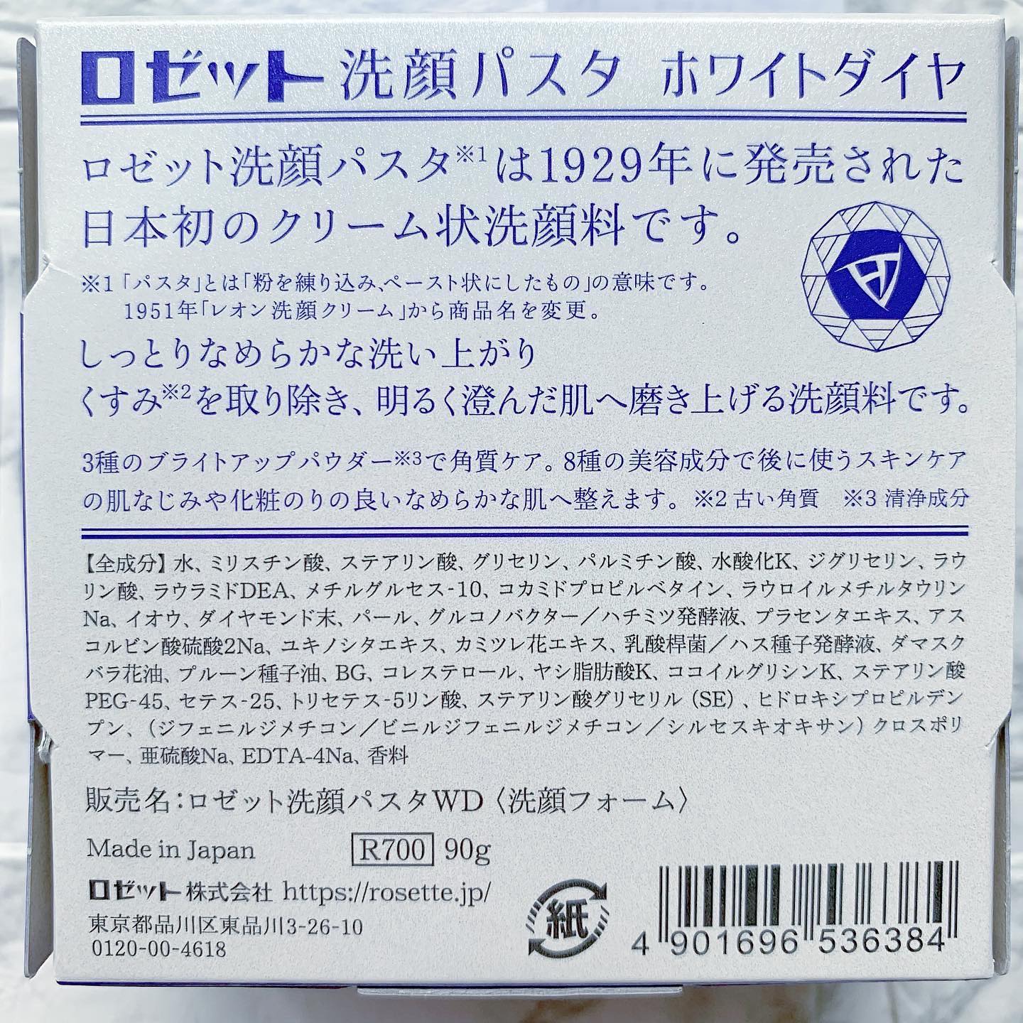 ロゼットが誇るロングセラー洗顔ブランド「ロゼット洗顔パスタ」イオウシリーズ。微細なイオウの粒子を独自の製法で練り込み、洗うたびに肌をととのえる洗顔料です。化粧ノリが悪いごわつき、くすみ(古い角質)にはしっとりなめらかな洗い上がりの「ロゼット洗顔パスタ ホワイトダイヤ」。透明感のある明るく澄んだ肌へ導く洗顔料です。