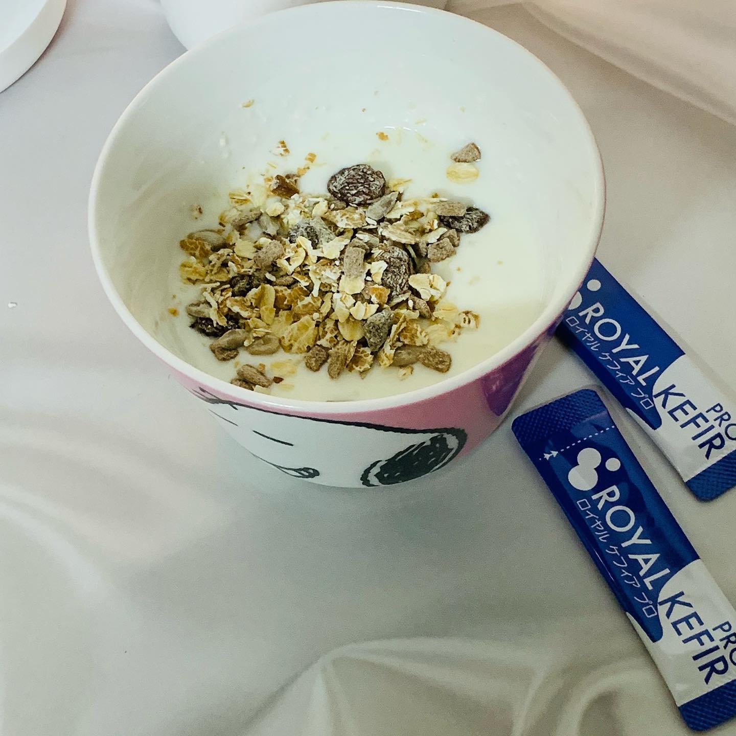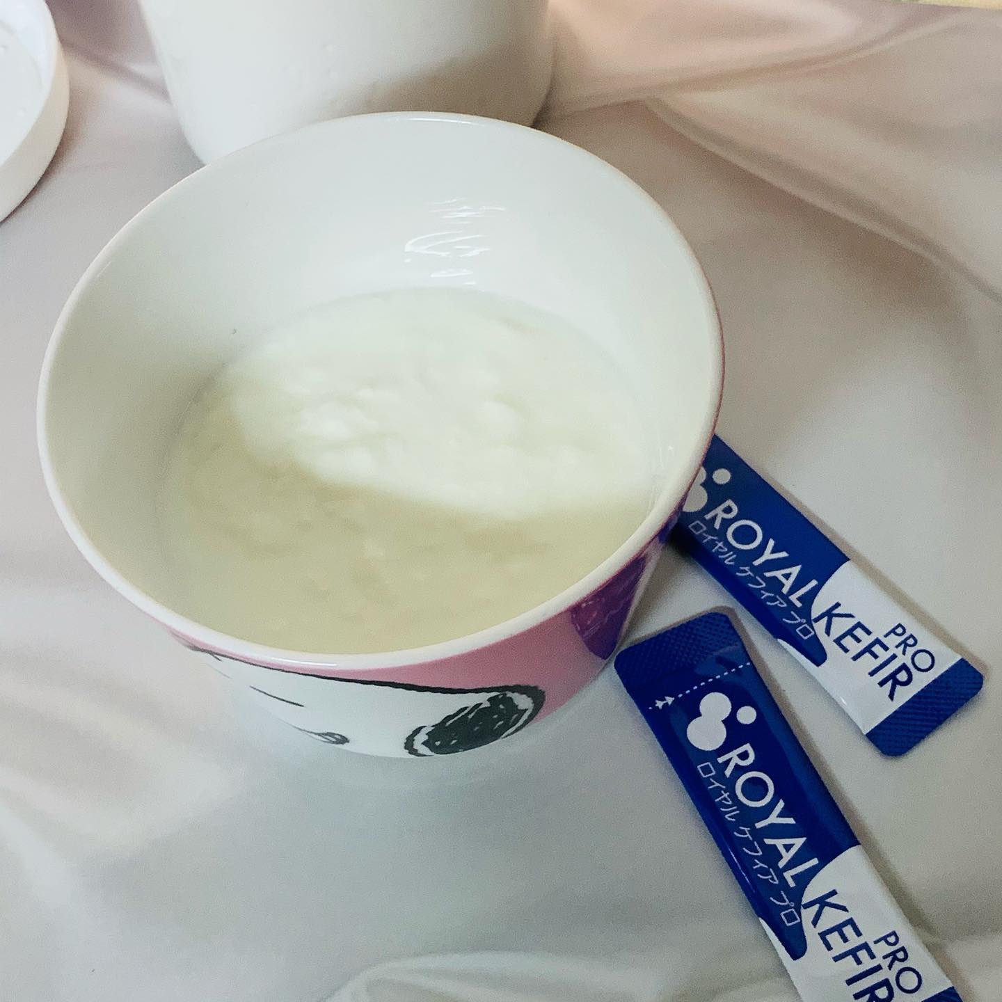 普段から美容・健康のためヨーグルトを食べているゆづきですが、今回ヨーグルトよりも乳酸菌の種類が多いケフィアを自分で作ってみました~ ╋━━━━━━━━━━━━━━━━━╋ 株式会社ロイヤルユキ( @kefirfan ) 《ケフィアヨーグルト スターターセット》 価格:1,382円(ケフィアヨーグルト10本セット) 【今回紹介する内容】 ・ロイヤルケフィアプロ(ケフィアヨーグルトたね菌)5本 ・発酵ヘルパーくるみちゃん ・くるみちゃんポット(発酵専用容器) ・おたま ╋━━━━━━━━━━━━━━━━━╋ ▼特徴▼ ☑️ケフィアの最大の魅力、乳酸菌と酵母の複合発酵+ビフィズス菌 ☑️酸味が気にならないフレッシュな風味で美味しい ☑️フリーズドライ製法で作られているから、長期の保存も可能 ☑️凝固剤・添加物。保存料不使用だから安心 ☑️簡単に作れる (′□`◎)ノvvvvvvvvvvvvレビューココカラvvvvvvvvvvvv 今までケフィアは食べたことはあったけど、ロイヤルユキのケフィアヨーグルトは、初めて セット内容が、ケフィアヨーグルトのたね菌。 発酵ヘルパーくるみちゃんセット。 自分で準備する物は、牛乳500mlだけでOK 付属の容器に牛乳+たね菌を入れてフタをする。 くるみちゃんを巻いた後、コンセントをさすだけと簡単に作ることができます。(放置時間:常温で24時間) ※くるみちゃんは、牛乳パックに使用することもできます。 個人的に、今の時期部屋が温まりにくいので、こういった専用発酵ヘルパーがあるのは嬉しいポイント そして、放置して24時間後見てみると、見た目しっかり固まっていました 最初は、ぷるぷるで固めなのかな?と思ったけど、おたまですくってみると、柔らかくてさらさらしています。 そして、プレーンだけど美味しい 普通のヨーグルトと違って、酸味は全くなく、まろやなか味わい 後味もスッキリしているので、ヨーグルトが苦手という方でも食べやすいかなと言う印象 そのままでも美味しいけど、私は最近ハマってるアガベシロップをかけたり、ミックスベリーをのせたり。 ミューズリーを混ぜたりして、朝食として食べました ジャムと混ぜたり、お菓子作りに使用しても美味しそうですよ (′□`●)ノvvvvvvvvvvvvレビューココマデvvvvvvvvvvv 1包で牛乳500ml分。 毎日ヨーグルトを食べる方でも、1週間保存できるしコスパも良くておすすめ 私も最近ヨーグルトの酸味が苦手になってきたので、ケフィアに変えようか迷っていたところでした。 皆さんも是非チェックしてみて下さいね #ロイヤルユキ #ケフィアヨーグルト #乳酸菌 #美容好き #便秘解消 #ヨーグルト好き #ヨーグルトダイエット #腸活 #菌活 #手作りヨーグルト #美活 #monipla #royalyuki_fan #コスメ好きさんと繋がりたい #美容好きさんと繋がりたい