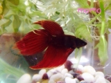 去年の10月か11月に実家にベタという闘魚がやってきましたオスはこうやって尾ビレと背ビレを広げて威嚇?するらしい(・∀・)きれー♪でも、冬の間寒かったからか、あんまり動かなくって、尾ビレも背ビレもくっついていったんです(´;ェ;`)これから暖かくなるから、また活発に動いてくれるといいなあ(´ェ`… 2014/03/27