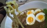 疲れを癒すために煮干ベース醤油系の濃いスープで味つけ、
