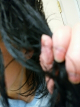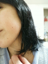 手にとり、取り毛先を中心に髪全体になじませ、ドライヤーで