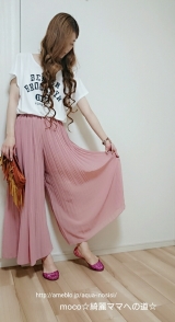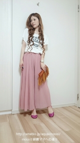 ゆるふわコーデ王道白&ピンクロゴTシャツ…Pierrot(ピエロ)シフォンプリーツスカンツ…楽天(UBASIC)ペタンコ靴…楽天フリンジバッグ…楽天(売り切れ)ネックレス…アンテプリマミサンガウォッチ…夏祭りの出店歩くたびにヒラヒラっとなびいて良い感じのユル感です色違いでモカも持ってますオススメ… 2016/06/08