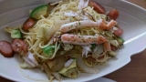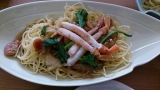 『最北の海鮮市場』ファンサイト参加中今度はぺペロンチーノにアレンジオリーブオイルにガーリックを熱して玉ねぎとウインナーを炒めてアボカドを入れて麺を投入します!そしてマジックソルトに塩コショウであじつけして茹でたかに飲みを最後に絡めて完成です!ふわふわあまくておいしいです(^o^) 2015/01/19