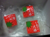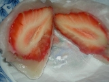 菜菓亭の苺大福(白あん)が3個当選しました 苺大福は家族皆大好きなんですが、餡は黒の粒あんのが殆どで、白あんバージョンの苺大福は初めてと言う事も有るし、色々なお店の苺大福も味わって、より自分好みの苺大福を探したいと思ってたので、とっても嬉しかったです 送られて来た苺大福は綺麗に包装された状態で… 2011/02/01