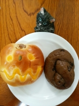 SAINTGERMAIN(サンジェルマン)10月新商品を2品、お試しさせていただきました担当者イチオシ商品のかぼちゃクリームのパンと、ショコラパンのふたつですかぼちゃクリームのパンは、北海道産かぼちゃのクリームが入った、かぼちゃのおばけパンハロウィンだからね鼻はかぼちゃの種、へたはクルミ、… 2015/10/12