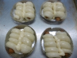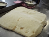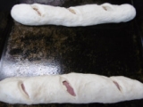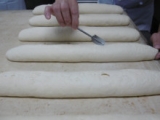 フランスパンの他にはバターフランス、チーズベーコン、ダブルウィンナーロールを作りました<チーズベーコン>チーズとベーコンを生地にのせ、切れ目を入れて巻きますベーコンが硬いので巻きにくい <バターフランス>バゲット生地に切れ目を入れ、バターを絞ります <ダブルウィンナーロール>長細くした… 2015/10/28
